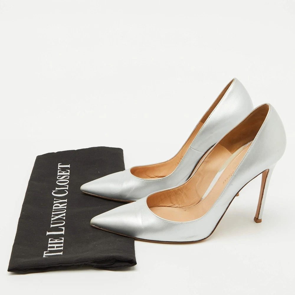Our eBay Store About Us Contact Us Add to Favorite Sellers Gianvito Rossi Silver Leather Pointed Toe Pumps Size 39 Curvaceous arches, a feminine appeal, and a well-built structure define this set of designer pumps. Coming with comfortable insoles and sleek heels, style them with your favorite outfits. Product Details Brand Gianvito Rossi Color Silver Includes The Luxury Closet Packaging Outsole Length 25 cm Outsole Width 8.5 cm Size 39 Certified by The Luxury Closet This item has gone through a detailed authentication process overseen by our experts. We offer a lifetime guarantee of authenticity on all our items. How We Check The in-house team of experts at The Luxury Closet is highly trained to verify the authenticity and the condition of the luxury products. They ensure that only 100% authentic items are put on sale.The evaluation process is unique with its own mix of assessment criteria and differs according to the category. Each item is evaluated based on the following combination of hallmarks, hardware, stitching, symmetry, material, craftsmanship, stamping, codes, hologram stickers, and packaging. Our authenticators also check if the items have been modified or amended (e.g., aftermarket diamonds, replaced batteries, repaired bags, etc.) International Buyers Import duties, taxes and charges are not included in the item price. These charges are the buyers responsibility. Please check with your country’s customs office to determine what these additional cost will be prior to buying.