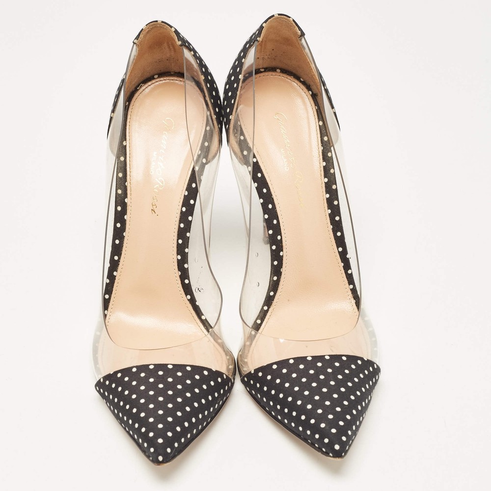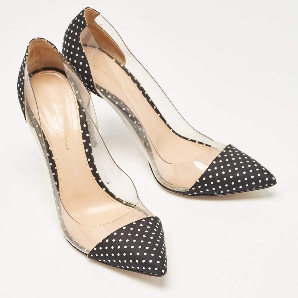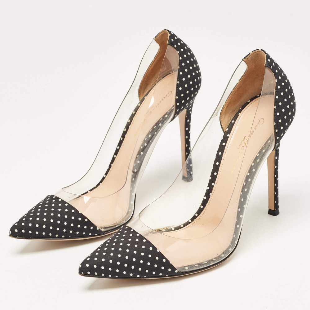 Our eBay Store About Us Contact Us Add to Favorite Sellers Gianvito Rossi TransparentBlue Fabric and PVC Plexi Pumps Size 38 Make a chic style statement with these designer pumps. They showcase sturdy heels and durable soles, perfect for your fashionable outings! Product Details Brand Gianvito Rossi Color Transparent Includes Original Dustbag Outsole Length 22 cm Outsole Width 8 cm Size 38 Certified by The Luxury Closet This item has gone through a detailed authentication process overseen by our experts. We offer a lifetime guarantee of authenticity on all our items. How We Check The in-house team of experts at The Luxury Closet is highly trained to verify the authenticity and the condition of the luxury products. They ensure that only 100% authentic items are put on sale.The evaluation process is unique with its own mix of assessment criteria and differs according to the category. Each item is evaluated based on the following combination of hallmarks, hardware, stitching, symmetry, material, craftsmanship, stamping, codes, hologram stickers, and packaging. Our authenticators also check if the items have been modified or amended (e.g., aftermarket diamonds, replaced batteries, repaired bags, etc.) International Buyers Import duties, taxes and charges are not included in the item price. These charges are the buyers responsibility. Please check with your country’s customs office to determine what these additional cost will be prior to buying.