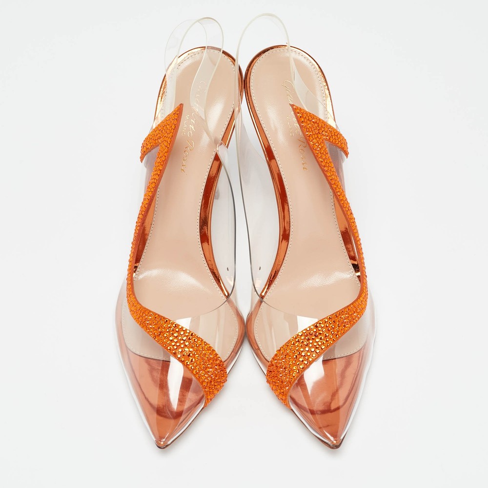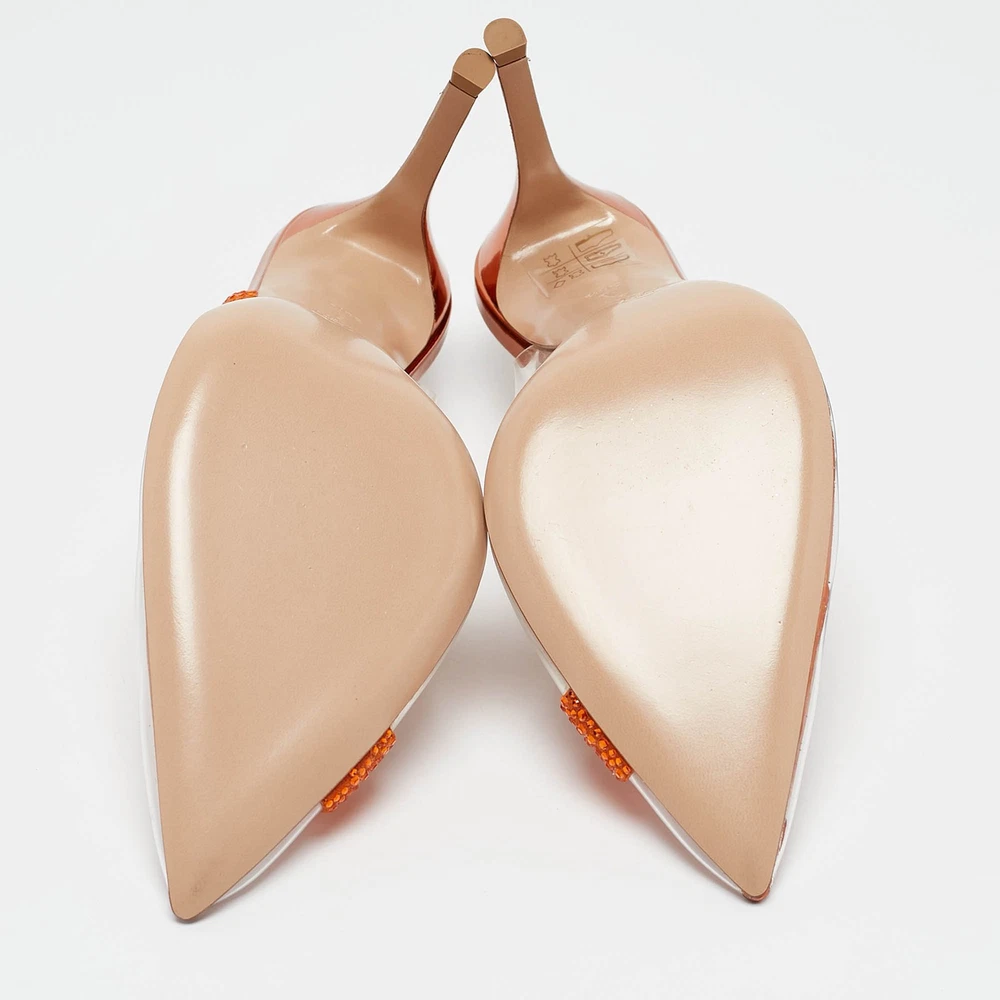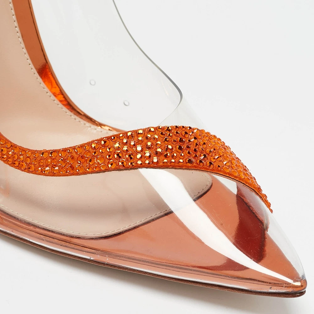 Gianvito Rossi Transparent/Orange PVC and Suede Embellished Hortensia Pumps