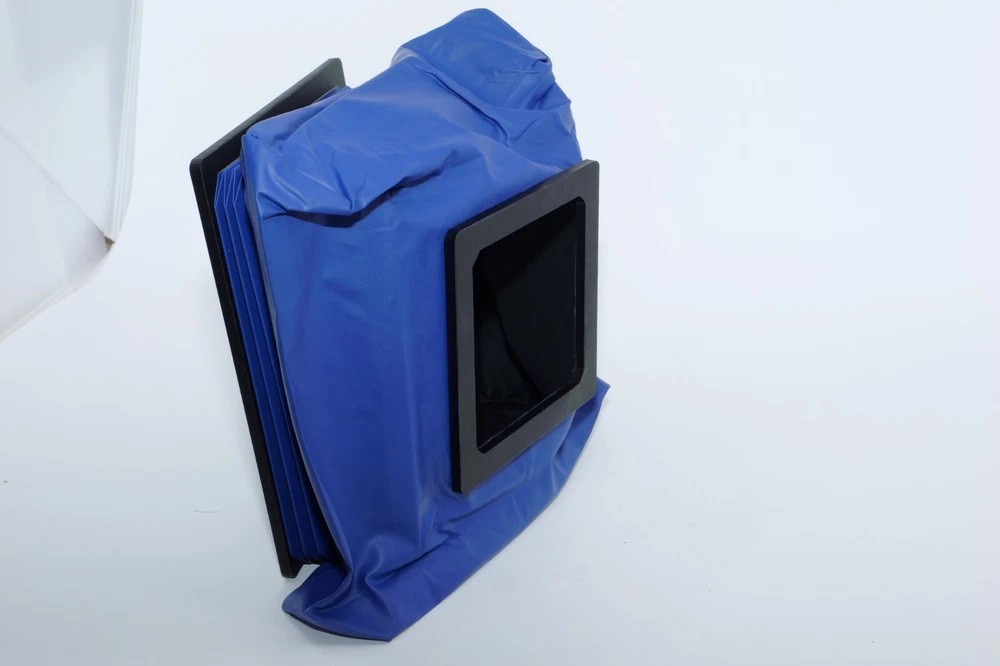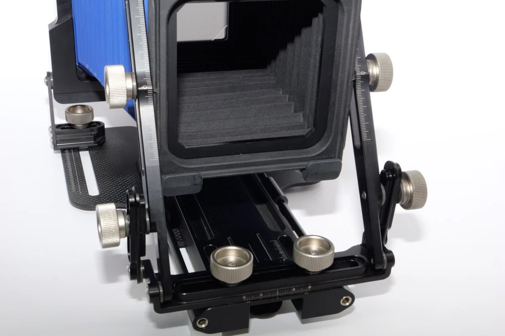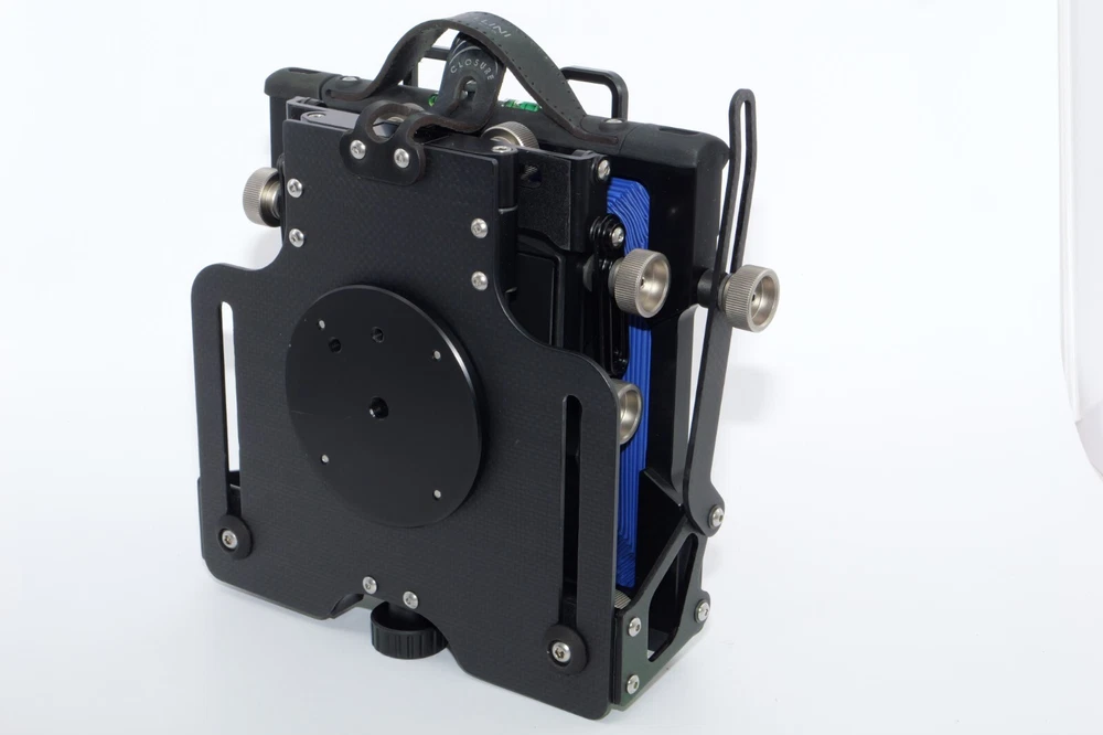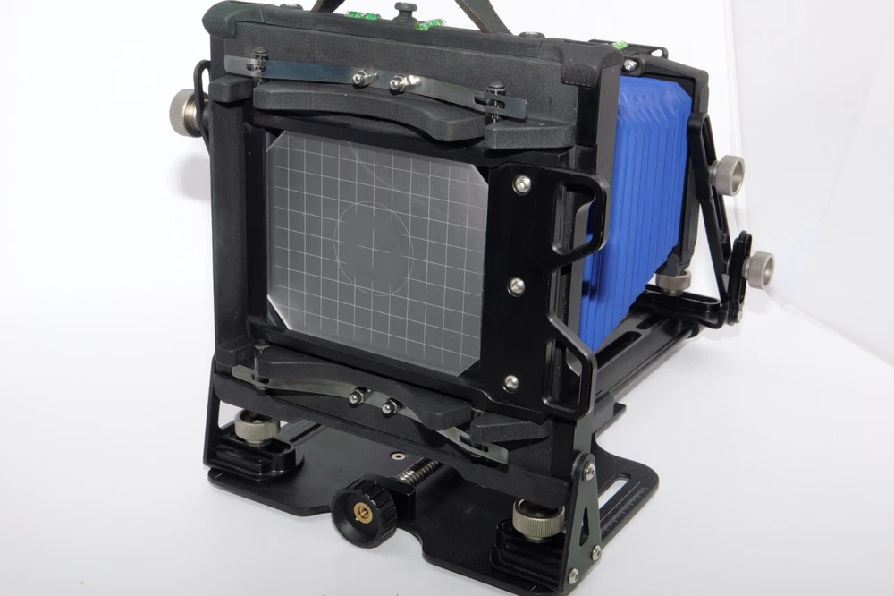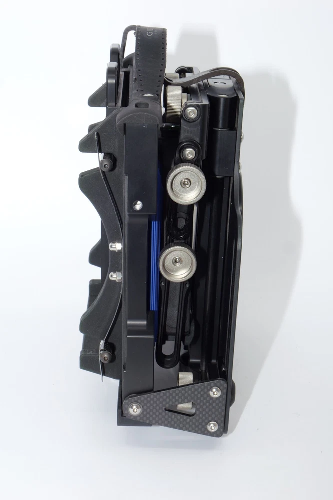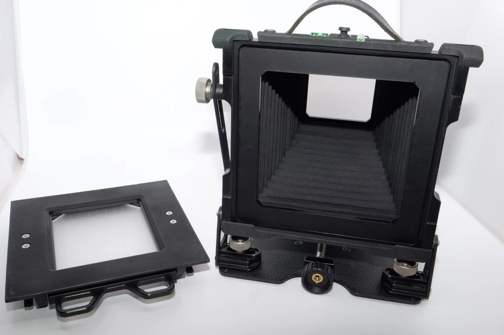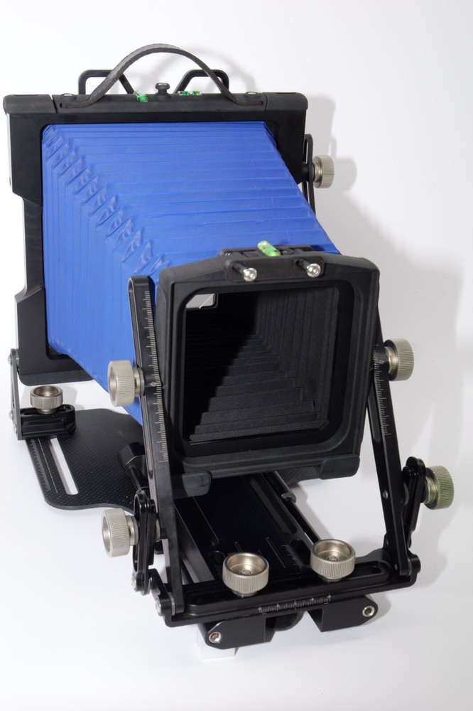 Gibellini ACN45 4x5 Field Camera. Made in Italy. High quality deluxe 4x5" large format field camera made from carbon fiber, and aluminum. Sturdy 4x5 camera with precise movements, and aluminum rails. Carbon fiber camera bed. Lined ground glass focusing screen. Light weight camera. Contrasting color royal blue normal & wide angle bellows. Chrome knobs on the camera. Professional traditional folding 4x5 field camera. Camera is in Mint/Mint- or 9.5 of 10 cosmetic condition. No dings or dents. Little sign of use. Good working order. Includes original box, Gibellini ACN 45 camera with normal bellows in Blue , and Wide Angle Bellows also in Blue . extra set of black knobs included, and two(2) 4x5 plastic Fidelity Elite sheet film holders. *************************************************** Gibellini crafts folding cameras that seamlessly blend heritage with innovation. These Italian-made beauties boast a distinctive design aesthetic and leverage cutting-edge technology to deliver exceptional functionality and performance. Furthermore, Gibellini's meticulous attention to detail extends to the materials used, incorporating high-strength, lightweight elements like aerospace titanium and carbon fiber to ensure exceptional technical quality and a premium user experience. Gibellini ACN 45 4x5 View Camera is a professional, traditional folding camera. It is made with Aluminum and Carbon Fiber. The camera is unibody CNC milled and includes a Carbon Fiber base, providing unparalleled stability while being lightweight. Aluminum rails allow for precise movements. EXTERNAL DIMENSIONS: 260x220x80 mm WEIGHT: 2.4kg / 5.3 lbs MIN/MAX extension bellows: 50 – 340 mm MIN/MAX with bag bellows: 0 – 400 mm FRONT RISE/FALL: + 55 / – 35 mm FRONT SHIFT: +/- 25 mm FRONT TILT: +/- 45° limited by bellows FRONT SWING: +/- 45° REAR RISE/FALL: 0 mm REAR SHIFT: +/- 15 mm REAR TILT:– 20° / + 90° (closure direction) REAR SWING: +/- 45° LENSBOARD: Requires Gibellini Size or Gibellini Adapter (Special Order, please send inquiry, Linhoff adapter is item #392040) TRIPOD MOUNT: 3/8” and 1/4 “ CAMERA BACK: horizontal/vertical positioning HOLDERS: compatibility with all commercial and Gibellini MECHANISMS: Aluminum/Carbon BELLOWS COLOR: Black (Special Order options available) BODY COLOR: Black (Special Order options available) ***************************************************** Nice high quality unique 4x5 Gibellini carbon fiber and aluminum field camera from Italy with extra wide angle bellows in Mint- condition. Sells with no reserve at a price of $1875 . I have LOT more Wisner View Cameras, Large Format cameras, Lenses and Accessories, Soft Focus and Barrel lenses on my other auctions, web page and eBay Store.