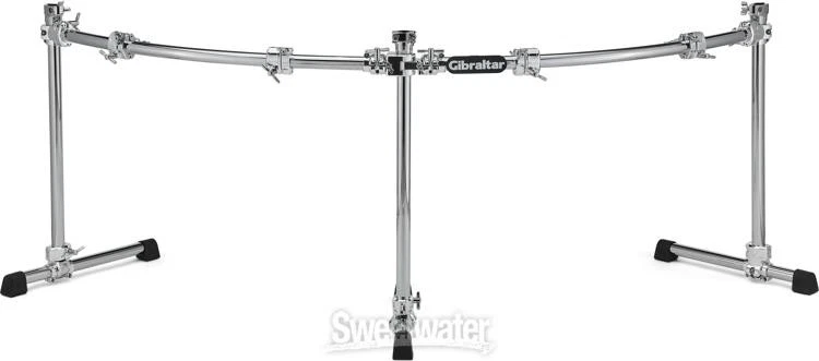 Rock-solid Security with Gibraltar Drum Racks Even if you don't play a massive Terry Bozzio–style drum set, Sweetwater drummers believe you'll still benefit from the speed, consistency, and clean look that results from adopting a rack-based setup. The name Gibraltar is synonymous with drum racks, and when you look at this GDR200C-CHR curved double bass drum rack, it's easy to see why that is. With nearly 11 feet of total tubing plus three T-legs and plenty of clamps and memory locks, this rock-solid drum rack handily accommodates drum sets with double bass drums. Additionally, the GDR200C-CHR comes with its own L-shaped drum key for quick and easy assembly. Lastly, should your kit grow in the future, the GDR200C-CHR's compatibility with other Gibraltar rack accessories means that you can expand your rack along with your kit, no problem.Your Gibraltar GDR200C-CHR rack includes: 3 x 30-in. GLMP Long Mounting Post with deluxe Sweetwater is an Authorized Gibraltar Dealer Genuine New Item Sweetwater's 2-year warranty Gibraltar GDR200C-CHR Curved Double Bass Drum Rack Drum Rack with 3 T-legs and 4 Multi-clamps Rock-solid Security with Gibraltar Drum Racks Even if you don't play a massive Terry Bozzio–style drum set, Sweetwater drummers believe you'll still benefit from the speed, consistency, and clean look that results from adopting a rack-based setup. The name Gibraltar is synonymous with drum racks, and when you look at this GDR200C-CHR curved double bass drum rack, it's easy to see why that is. With nearly 11 feet of total tubing plus three T-legs and plenty of clamps and memory locks, this rock-solid drum rack handily accommodates drum sets with double bass drums. Additionally, the GDR200C-CHR comes with its own L-shaped drum key for quick and easy assembly. Lastly, should your kit grow in the future, the GDR200C-CHR's compatibility with other Gibraltar rack accessories means that you can expand your rack along with your kit, no problem. Your Gibraltar GDR200C-CHR rack includes: 3 x 30-in. GLMP Long Mounting Post with deluxe tom/cymbal arm adapter 2 x 40-in. SC-GPR40C Curved Drum Rack Extension Tube 3 SC-GCSQCLTLA Chrome Series Quick Clamp Long T-leg Assembly with QR T-clamp 2 SC-GCRQT Road Series Chrome Quick T-clamp 6 SC-GCML Memory Lock 4 SC-GCRMC Road Series Chrome Multi-clamp 4 SC-GCHML Chrome Series Hinged Memory Lock with Wingnut 1 SC-GDRLOGO Drum Rack Logo Clip 3 x 3/4-in., 7/8-in., and 1-in. SC-RMAADP Nylon Sleeves for deluxe tom/cymbal arm adapter 1 L-shaped drum key Gibraltar GDR200C-CHR Features: Top-tier drum rack with Gibraltar build quality Accommodates drum sets with double bass drums Enables you to set up your drum set with greater speed and consistency Lends a clean and streamlined appearance to your kit Nearly 11 ft. of total tubing Easily expandable via other Gibraltar rack accessories Includes an ample amount of clamps and memory locks Comes with its own L-shaped drum key for quick assembly Specification Detail Type Curved Double Drum Rack Compatibility Double Bass Drum Kits Dimensions 3 x 30" Vertical Bars, 2 x 40" Curved Horizontal Bars Included Hardware 1 x 3-way Clamp, 2 x T-clamp, 6 x Memory Locks, 4 x Mutli-clamps, 1 x L-shaped Drum Key RETURN INFORMATION We want you to be completely happy with your purchase from Sweetwater. If you are not satisfied with your product, you may return it for a refund of the purchase price within 30 days. If your purchase was eligible for Free Shipping, the shipping cost will be deducted from your credit or refund. Returns must be in the complete and original packaging with all accessories and complete documentation (Owner's Manual, warranty card, quick start guides, etc.), show no signs of wear or use, and include a Return Authorization number or be subject to a restocking fee.