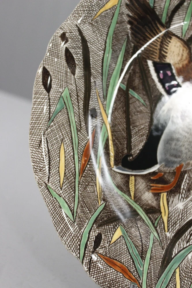 1. This stunning Gien Rambouillet plate features a charming duck hunting scene in excellent condition, signed on the back. At 26cm, it's a beautiful collector's piece with vintage French charm. Shipping is available across Europe and worldwide—great for adding elegance to any space!