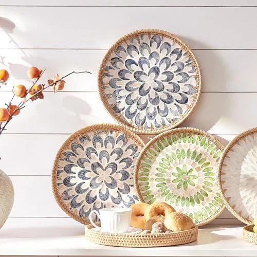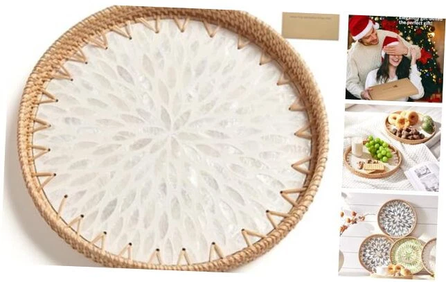 Menu 1. We require immediate payment. 2. We currently accept payment via eBay managed payments only. 3. Once payment is cleared, we will dispatch your shipment within 1-3 business days. Please refer to the "Shipping" tab for more information regarding shipping speed to your destination. [Gift Box] Rattan Tray with Mother of Pearl Inlay, Round Rattan Serving Tray with Wooden Base, Decorative Wicker Basket for Table Decor, Mosaic Tray for Storage Display of Jewelry Coffee Bread (white) Product description 【Environmentally Friendly & Durable】 Crafted from 100% natural high-quality rattan with mother of pearl inlays at the base, the serving tray is a sustainable and long-lasting choice for a healthy home. 【Distinctive Bohemian Artistry】 This pearl white rattan tray is a unique work of art, highlighted by a stunning shell pattern and mother-of-pearl inlays, bringing a natural, rustic elegance to your home. 【Multi-Functional & Adaptable Tray】This rattan tray is perfect for serving everything from breakfast to snacks, and it also works as a decorative organizer for small items in any space, whether it’s the living room, kitchen, or bathroom. It’s durable enough to be used as an art piece and can be easily cleaned with a damp cloth. 【Thoughtful Gift Selection】 This 12-inch round rattan tray is an excellent gift for any special occasion, be it Christmas, a birthday, a wedding, or a housewarming. It's a perfect choice for gifting to family, friends, colleagues, or even yourself. 【Easy Care & Durability】This artisan-crafted serving tray is built for both quality and simplicity. To clean, just wipe it with a damp cloth, and let it dry out of direct sunlight. Keeping it in great shape couldn’t be easier! PLEASE MESSAGE US IF YOU HAVE ANY OTHER QUESTIONS, AND MANY THANKS FOR READING ALL OF THIS. Copyright ©#. All Rights Reserved.