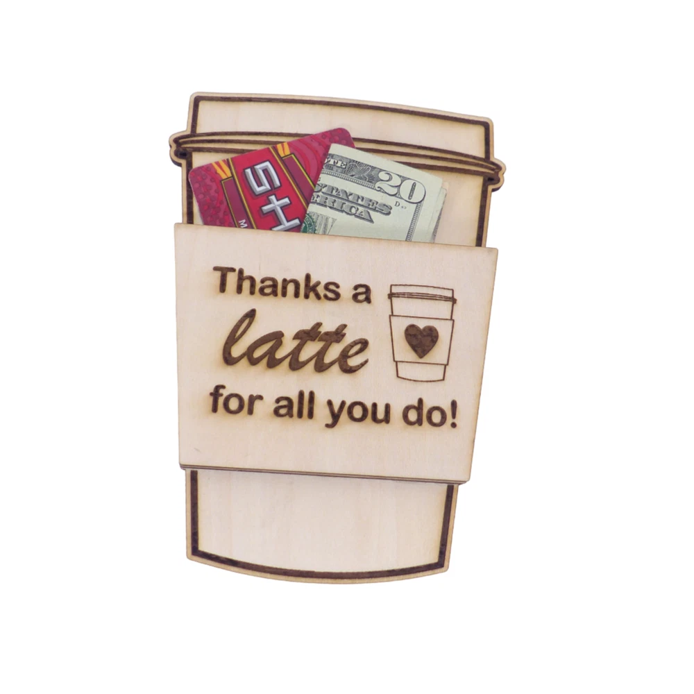 -------------------------------- For Your Consideration: -------------------------------- Gift Card / Cash Money Holder Laser Cut & Engraved Coffee Cup Wood Birthday * Laser Cut & Engraved * Material: Wood * Shipped Assembled & Ready for Card or Cash * Laser-Cut by the seller in Virginia, USA. ** No Cash or Gift Card is included in the Sale - They are Shown for Display Purposes Only ** ---------------------------------------------- Approximate Dimensions (inches): ---------------------------------------------- Height: 6 Width: 4.25 Depth: 3/8 ---------------------------------------------------- Thanks for Visiting the SolesEtc Store! ---------------------------------------------------- * Contact us through eBay Messaging for Multiple Quantities and/or Personalization