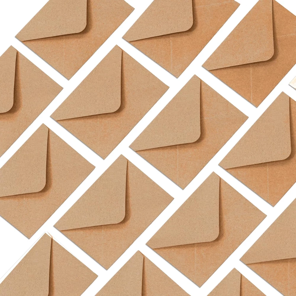 KRAFT MINI ENVELOPES: Perfect sized kraft paper envelopes for gift cards, wedding placeholders, name cards, gift cards, thank you notes, gift tags and more! GREAT FOR HOLIDAYS AND EVENTS: Perfect for holidays, weddings, baby showers, birthdays and banquets. VALUE PACK: Make sure to always have some mini envelopes on hand when you need them! EASY TO SEAL GUM FLAP ENCLOSURE: Apply water to edges of flap and stick DIMENSIONS: Each mini envelope measures 4 x 2.7 inches. These are the perfect sized envelopes for gift cards, wedding placeholders, name cards, gift cards, thank you notes, gift tags and more! They are perfect for holidays, weddings, baby showers, birthdays and banquets. Make sure to always have some mini envelopes on hand when you need them! Each mini envelope measures 4 x 2.7 inches. NOTE: These envelopes can NOT be mailed via the United States Postal Service (USPS).