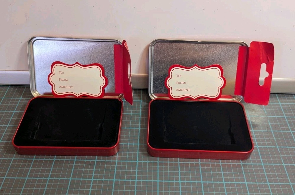 The Gift Card Holder Box Santa Claus Christmas Containers from Card Carriage are the perfect gift for the holiday season. These rectangular-shaped boxes feature a festive design with Santa Claus, making them ideal for Christmas gifting. Made of metal and multicolored in design, these medium-sized containers come in a set of two and include tags for easy gifting. Perfect for presenting gift cards or cash in a charming and festive manner, these Santa Claus-themed boxes add a touch of magic to any present. Sold as is. Not returns. Thank you and enjoy!