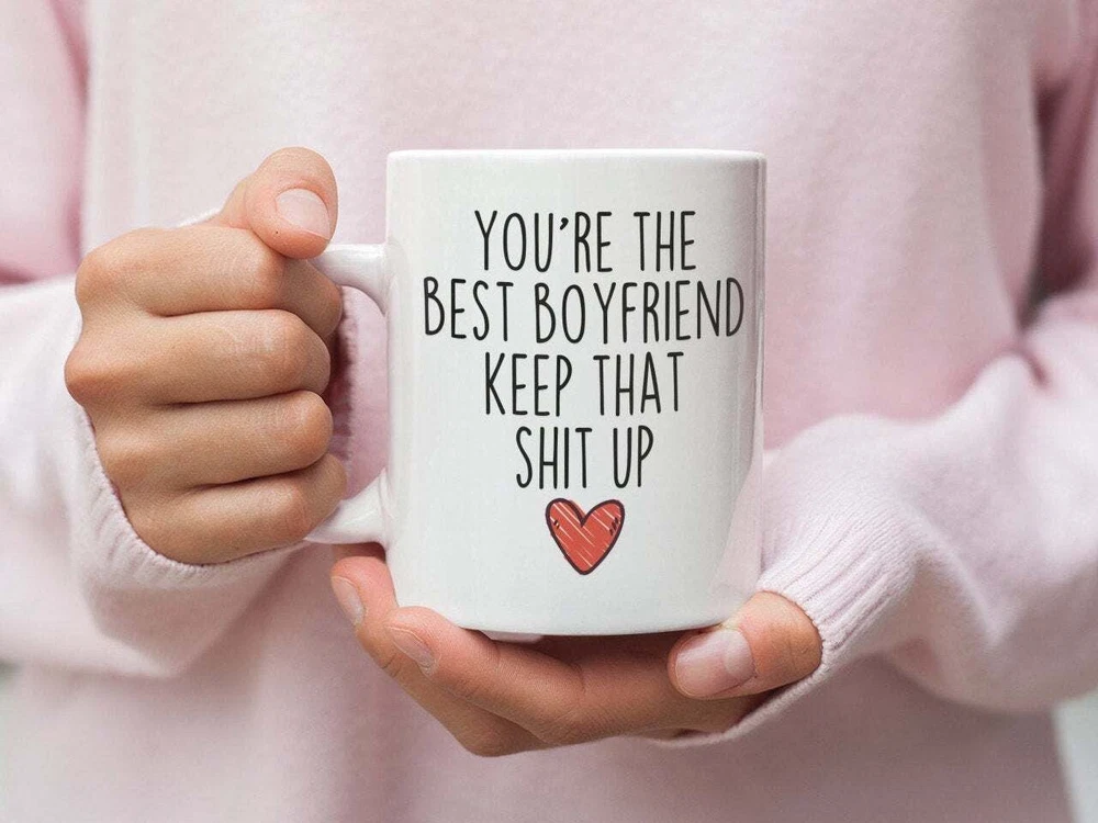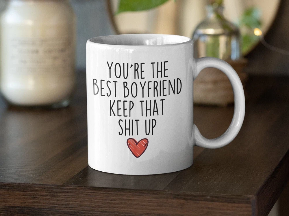 Gift For Boyfriend Boyfriend Gifts Funny Boyfriend Gift Boyfriend Mug Boyfriend Product Details.. This high quality 11oz. ceramic white mug has a premium hard coat that provides crisp and vibrant color reproduction sure to last for years. Perfect for all hot & cold beverages. The highest quality printing possible is used. It will never fade no matter how many times you wash it. Material: 100% Ceramic. Print both sides. Dishwasher and Microwave Safe. High Gloss + Premium White Finish. Printed in the U.S.A. Personalized & Custom. We support personalized and custom mug to add custom, when placing an order, you can add notes to the "order note" in shipping address section. Also you can contact us directly via message. Shipping Info. Ready to ship in 1 to 2 business days, All products are made-to-order and proudly printed in the United States. Shipped by USPS and DHL, You will receive your order in 5-7 days. Replace & Refund. All products are defective during shipping broken, chipped will be replaced free of charge. You are not satisfied with the product, we will refund 100% money to you. If any other issues arise, please do not hesitate to message, we would be more than happy to assist you.