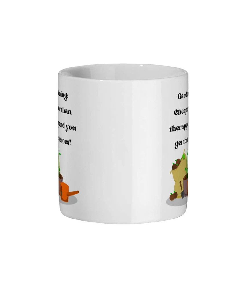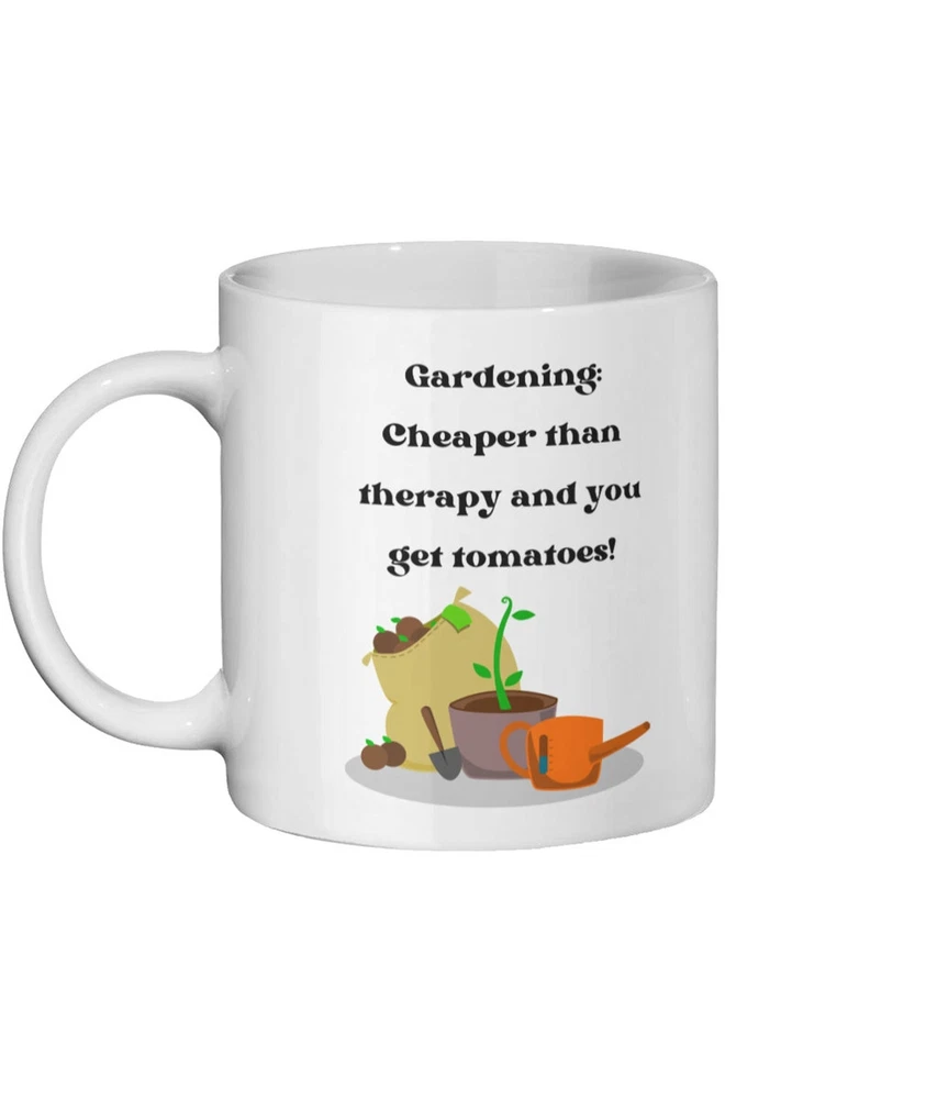 Gift For Gardener Gardening Mug Funny Gardening Gift Vegetable Gardener Gardening Is Cheaper Than Therapy Tomato Gardener Garden Gift Product Details.. This high quality 11oz. ceramic white mug has a premium hard coat that provides crisp and vibrant color reproduction sure to last for years. Perfect for all hot & cold beverages. The highest quality printing possible is used. It will never fade no matter how many times you wash it. Material: 100% Ceramic. Print both sides. Dishwasher and Microwave Safe. High Gloss + Premium White Finish. Printed in the U.S.A. Personalized & Custom. We support personalized and custom mug to add custom, when placing an order, you can add notes to the "order note" in shipping address section. Also you can contact us directly via message. Shipping Info. Ready to ship in 1 to 2 business days, All products are made-to-order and proudly printed in the United States. Shipped by USPS and DHL, You will receive your order in 5-7 days. Replace & Refund. All products are defective during shipping broken, chipped will be replaced free of charge. You are not satisfied with the product, we will refund 100% money to you. If any other issues arise, please do not hesitate to message, we would be more than happy to assist you.