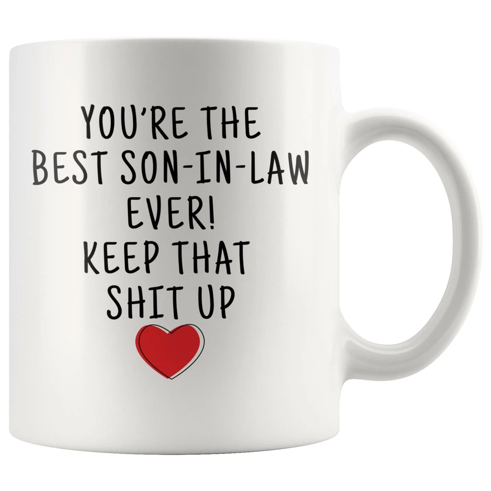 Gift For Son In Law Favorite Son In Law Son In Law Gift Ideas Son In Law Coffee Product Details.. This high quality 11oz. ceramic white mug has a premium hard coat that provides crisp and vibrant color reproduction sure to last for years. Perfect for all hot & cold beverages. The highest quality printing possible is used. It will never fade no matter how many times you wash it. Material: 100% Ceramic. Print both sides. Dishwasher and Microwave Safe. High Gloss + Premium White Finish. Printed in the U.S.A. Personalized & Custom. We support personalized and custom mug to add custom, when placing an order, you can add notes to the "order note" in shipping address section. Also you can contact us directly via message. Shipping Info. Ready to ship in 1 to 2 business days, All products are made-to-order and proudly printed in the United States. Shipped by USPS and DHL, You will receive your order in 5-7 days. Replace & Refund. All products are defective during shipping broken, chipped will be replaced free of charge. You are not satisfied with the product, we will refund 100% money to you. If any other issues arise, please do not hesitate to message, we would be more than happy to assist you.