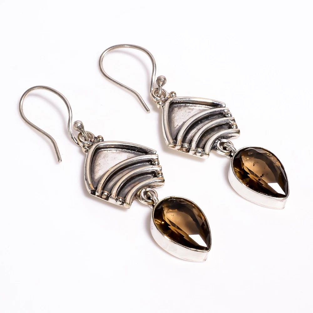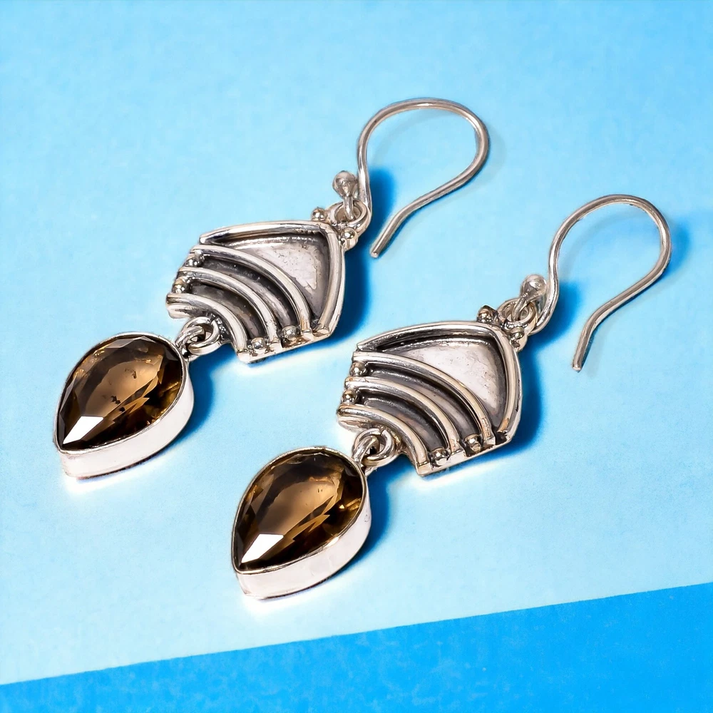 Welcome to Jaipur Silver Gallery Gift For Women Drop/Dangle Birthstone Earrings 925 Silver Natural Smoky Quartz Handmade Earrings, Sterling Silver Earrings, Smoky Quartz Earrings, Handcrafted Earrings SKU : - JSUKE-1824 Gemstone : - Smoky Quartz Stone Shape : - Pear Metal : - Sterling Silver Metal Purity : - 925 Earring Length : 2.2 Inches Earring Width : Inches _______________________________________________________________________________________ Amazing Properties of Silver ****************************** Tough and Long-lasting: Silver is incredibly strong, built to withstand daily wear and tear as well as tough environmental conditions. Easy to Shape and Design: Silver is like clay for skilled craftsmen, allowing them to create beautiful and intricate designs effortlessly. Great at Conducting Energy: When it comes to heat and electricity, silver is the go-to. It can quickly and efficiently transfer energy, making it ideal for various applications. Keeps Things Clean and Safe: Silver has a natural ability to keep harmful bacteria at bay, making it a reliable choice for promoting cleanliness and well-being. 3 Underrated Benefits Of Silver ****************************** Gorgeous Charm: Silver jewelry shines brightly, enhancing any outfit and fitting everyone's style with ease. Gentle on Skin: Silver is kind to your skin, reducing the chance of allergies and making it a favorite choice for accessories. Healing Vibes: Some believe silver jewelry has a soothing touch, possibly aiding in easing issues like arthritis, anxiety, and the blues. _______________________________________________________________________________________ For Mother's Day Gift For Father's Day Gift For Promise For Valentine' Day For Halloween Party For Christmas Day Gift For New Year Party For Mom For Her _______________________________________________________________________________________ If you need more help or want design tips, just give us a shout! We're lightning-fast in getting back to you. Every single thing we create is made by hand in our special workshop, and we put a whole lot of love and care into every piece. Thank you for stopping by! We're confident you'll have an amazing time shopping with us. We're here to make sure every moment you spend with us is filled with delight and satisfaction. Happy shopping!