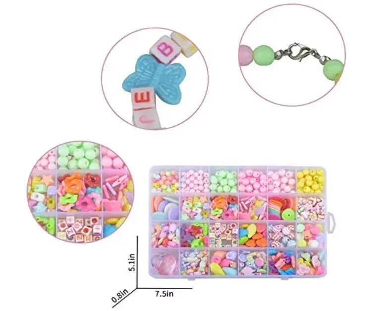 Gift Set for Girl Jewelry Making Kit Pretend Play Toy 5 6 7 8 9 10 11++ Year Old US Warehouse - FREE & FAST Shipping in USA Product Description: 【Beads Set for 4-6 Year Old Girls】 This bead has different shapes, sizes and colors, plus beading tools, all stored in a transparent bead storage box. Ideal for brightly finished bead sets for Kids over 4 years old or DIY enthusiasts. These beads can be stringed together to form necklaces, bracelets, headband, jewelry or key chains. Suitable as a birthday gift for girl age 5 6 7 or a Christmas present. 【Jewelry Making Kit for Girls Age 4-7】 This DIY beads kit can help Kids girl age 4 5 6 to better improve hand-eye coordination, and can also exercise child's hands-on ability to experience the fun of making jewelry. 5-7 year old toddlers will have a lot of creative ideas in the process of making, so that children's imagination can be better played. The process of making beading requires a lot of patience, which allows 4-8 years old girls to exercise patience and perseverance from an early age. 【4+ Years Parent-Child Toys 】This jewelry kit is ideal for family fun activities, parents and kids can make necklaces, bracelets or jewelry accessories. It can help 5 6 7 year old girls to develop motor skills, finger strength, color recognition and creative expression. It is a very attractive attraction for girls kid age 4 5 6 7 to play and DIY to make their own unique jewelry, suitable for use at home, outdoor, travel and parties. 【 Friendly Making Kits for 4 5 6 Year Old Kids 】This is a bead made of environmentally-friendly high-quality material. It has no odor and no fading. It is moderate in size. This beads set can stand the test of time and let girls age 5 6 7 8 to play and wear. Nothing damage for child, you can use it with confidence. It is also equipped with a bead storage container, which keeps the beads clean and orderly, and it is easy to carry. 【Perfect Gifts for 5-7 Year Old Kids Girl】 Bead set can improve your child's creativity, imagination, logical thinking, hand-eye coordination and so on. Very suitable for girls boy age 5 6 7 8, can be used as a special gift for kids birthday, Halloween, Thanksgiving, Christmas. This DIY beads toy is easy to create and design, so 4 5 6 year old kids girl can enjoy the joy of making with parents (don't let the kids do it alone to avoid the kid eating beads) Feedback: 1.Any question for your order, please contact us in time, we will reply to you within 24-48 hours and give you a satisfactory answer. 2.If you are satisfied with our products and services, hope to take up a little precious time to leave feedback reviews for our products.Thanks! 3.Your satisfaction is our effort. Welcome to order again! Have a great day! Our Policy: 100% Satisfaction Guarantee 30 Days Return and Refund Guarantee Free and Fast Shipping in USA, US Warehouse 15% of restocking fee will be charged for return it