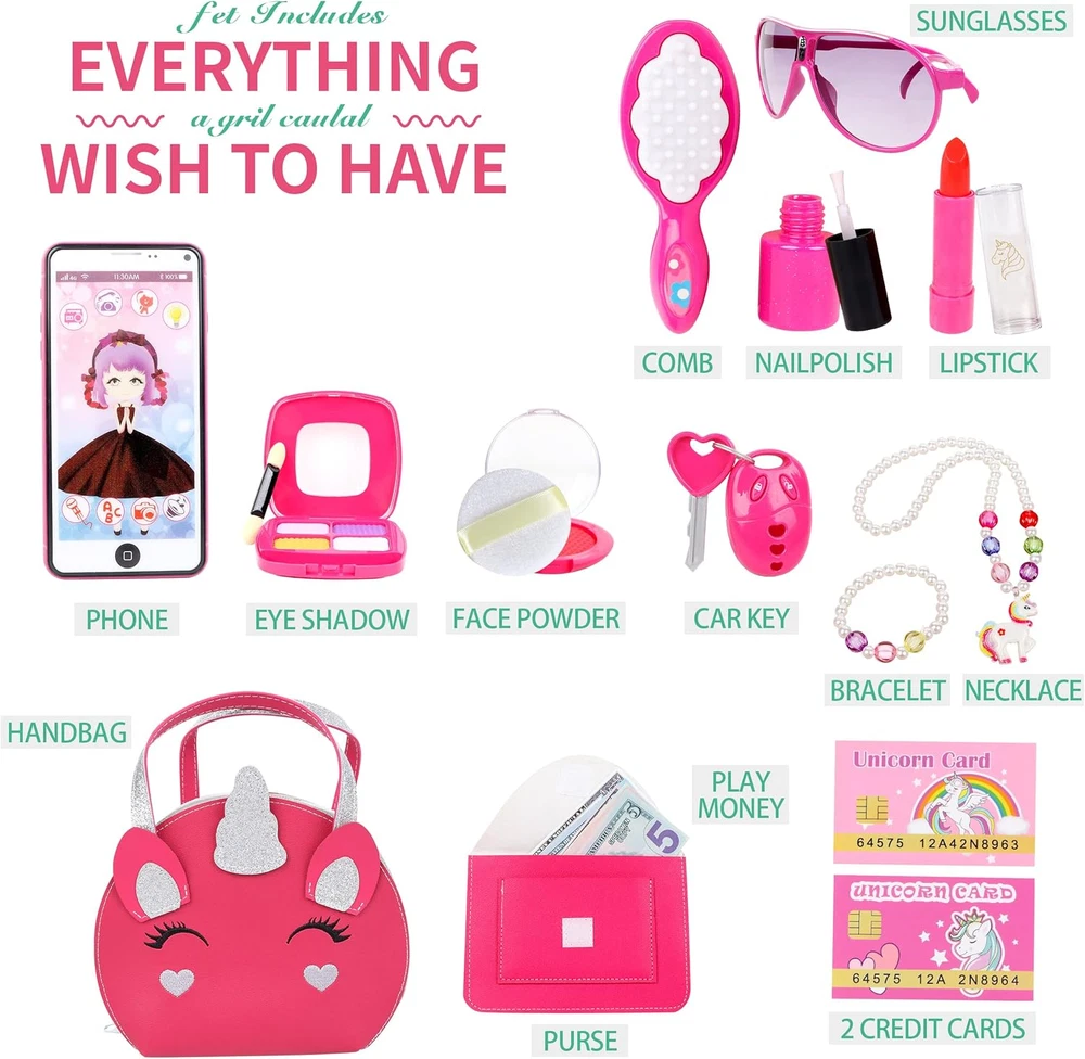 MENU Store Save Seller Feedback Contact Us Store Save Seller Feedback Contact Us WHY BUY FROM US ? High Quality Product All items in stock & ready ship 30 Days Moneyback Guarantee SHOP CATEGORIES Home & Garden Baby Toys Health & Beauty Jewelry & Watches Clothing, Shoes & Accessories Collectibles Art & Craft Supplies Sporting Goods Toys & Hobbies Computers/Tablets & Networking Pet Supplies Cameras & Photo Cell Phones & Accessories Consumer Electronics Dolls & Bears Art Why Choose Us? Gift for Kid, Toddler Purse Pretend Play Toys Includes Fake Makeup Kit, Unicorn Handbag, Phone, Wallet and Jewelry for Little Girls Age 3 4 5 6 7 8 Kids Your Princess Niece Granddaughter Birthday Xmas Gifts Product Description Age Range Description Little girls ages 3-12 Brand Name RONGGE Item Dimensions 5 x 2 x 5 inches Color Pink Educational Objective Little Girls Material Faux Leather Theme Princess Included Components unicorn hangbag, little girls purse, mobile phone, car key, sunglasses, lipstick, nail polish, Eyeshadow, Powder, comb, unicorn necklace and bracelet, unicorn cards and play money. 👩👧👧【Toddler Purse Just like mommy's】: This little girls purse has everything she needs to pretend play little Mommy on the go. Watch her go shopping like mom or just role-playing at home. No longer to worry about her messing with your hangbag. ❤️【💯Safe Quality Bring More Fun💯】ASTM and CPC certificated Toddlers purse kit. Non-toxic material with eco-friendly foam fake cosmetic toys with rounded edges to avoid injury and ensure children safe play and no mess to clean up, also don't worry about toddler's sensitive skin. 🛍️【Complete Dress Up Set】: The RONGGE pretend paly toys contain everything a girl wanna to have! Include: unicorn hangbag, little girls purse, mobile phone, car key, sunglasses, lipstick, nail polish, Eyeshadow, Powder, comb, unicorn necklace and bracelet, unicorn cards and play money. 💄【Learn by imitating and pretending】Girls love to imitate the behavior of their mother. RONGGE play purse set for toddlers is designed to inspire imaginary and creative play, allowing your little girls enjoy to‘pretend play’on herself, her dolls or other people. 💝【Best Gifts for Girls】Our kids purse set is designed for 3 4 5, 6-8 year old toddler girls. Good choice for birthday, festival and Christmas as a gift for little girl. Let the imagination run wild and enjoy hours of play with a complete pretend purse toy set, designed especially for your little princess! Product Description RONGGE Girl Toys--Little Girls Purse with Accessories and Pretend Makeup for Toddlers to Pretend Play Children will imitate the behavior of adults. They always like to explore their mother's handbag and play with everything inside. The children see their mothers doing makeup, making phone calls, and shopping every day... They will pretend to be putting on makeup, making phone calls, and shopping too... So RONGGE pretend play set for little girls will be your idea choice. Why choose this set for Your Kids First Purse gift: Super strong toddler purse outlasts little girls’ dreams. Loads of accessories spark imaginary play. Includes a complete purse set + a fake makeup set. Perfect Gift for Girls 3 4 5 6 7 8 Years Old. All In One Packed with all the accessories wanted in a pretend purse for little girls. Be like Mom with hangbag, purse, mobile phone, car key, sunglasses, lipstick, nail polish, Eyeshadow, Powder, comb, unicorn necklace and bracelet, unicorn cards and play money. With Unicors Hangbag Come with a fashion hangbag, easy to organize and carry. For Dress up Pretend Play Purse Set will be a huge shot for girl , because this princess kit is exactly what they have been longing for. For Pretend Makeup Imitation is the natural nature of every child, and every girl is always curious about her mother‘ cosmetics. The real cosmetics will damage the skin.You will like our makeup set toy because kids toy makeup have real makeup feelings and are safe. Made of non-toxic materials, it gives you and your children a more secure experience. Shipping FREE SHIPPING. All items will be shipped within 3-5 days after payment is received. Returns / Replacements Please kindly contact us before returning the error items. The purchased items need to be returned in unused condition with original packing or damaged caused by shipping or product error, within 30 days of receipt. Please note, as a part of return process requirement, we only accept the return which is followed our instruction and our return label. WE WILL PAY ALL THE RETURN SHIPPING FEE. Please kindly don't arrange return by other methods. We will refund to buyer or send the replacement at buyer choice. We can also send different products to replace the current item, if buyer prefers to do so. Payment We accept payment by any of the following methods: PayPal PayPal Credit Credit card or debit card Apple Pay Google Pay About Us Edu_kidshop store offers all products you need in 4 seasons around the year We are trying to make all customers satisfied with our products and services No matter what type of questions you want to ask, please feel free to contact us any time. We will be happy to respond as soon as possible but no later than 24 hours Our store opens 24/7 Greetings Welcome to the EDU_KIDSHOP. Enjoy your shopping experience we appreciate your business! PAYMENTS ACCEPTED EDU_KIDSHOP © All Right Reserved.