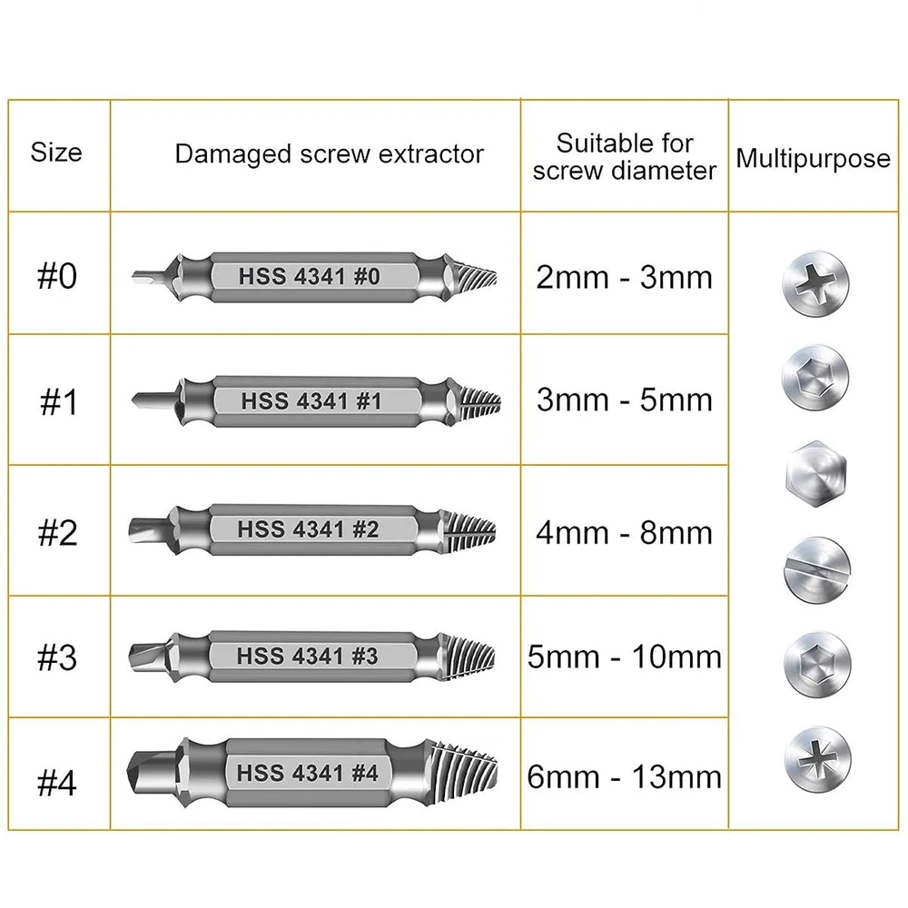 APPLY TO MOST DRILLS : 6 pieces screw extractors work with any drill and all the screw size or bolt (3-12mm), These extractor tools are used to reverse the damaged screw counterclockwise until it is released The DIY Tools for Men-Men won't know they need screw extractor set until they have one! This screw extractor set is GIFTS WRAP AVAILABLE, can be gifted to your loved ones as it reflects a fresh trend with fun and practical. Amazing and Unique tool gifts for men women. The must have stocking stuffers for men, gifts for dad, husband, father, him, guy teens, adult, Boyfriend, son on Birthdays, Christmas, Fathers Day or anniversary. Perfect Holiday Gifts Guide HIGH QUALITY - This damaged screw remover tool kit is made from High-Speed Steel H.S.S 4341# , which have high hardness of 63hrc, it's durable and easily to remove any damaged screws. EASY TO USE: Just two simple steps to get the job done - drill a hole with a cutting size using the right size screw extractor and easily remove the screw or bolt using the removal tool Hardness 63-65HRC: Titanium hardened steel material, more durable than most screw extractors on the market, better hardness and durability than others, buy with confidence and complete peace of mind Cool Gadgets for Men Dad Christmas Birthday Gifts for Men and Women - Men won't know they need screw extractor sets until they have one! Every screw has the potential to rust and break, which can create a situation where it cannot be removed. Owning it, there will be no anxiety about rusty screws. This screw extractor set is GIFTS WRAP AVAILABLE, can be gifted to your loved ones as it reflects a fresh trend with fun and practical. Amazing and unique tool gifts for men women. A must have stocking stuffer for men on birthdays, Christmas, Father's Day or anniversaries, a gifts for dads, husbands, fathers, him, adults, boyfriends, sons. The best and most practical and surprising Christmas gifts Product Description Damaged Screw Extractor Kit and Stripped Screw Extractor Set Easily and Quickly Remove All Common Sizes of Damaged, Broken or Stripped Screws How to Use: Step1: Make sure to use the drill side, make sure it is counterclockwise , not too fast and not too slow, but make sure you drill deep enough. When drilling, make sure to use some force (not too much force, but not too light force) against the screw. Step2: Please make sure to use the extractor (Spiral) side, make sure it is counterclockwise (that is, the direction in which the screw is screwed out), and the speed should be slow, so that the screw can be grasped. Don't go too fast. If you can't grab the screw, try the extractor (Spiral) side of the large extractor instead, no need for a new hole ADDITIONAL #2 BIT Good news! We’ve included an additional #2 bit. This is the most frequently used bit in the box GREAT GIFT Our incredible extractor set is the perfect gift for professional contractors, carpenters & construction crews, as well as the casual SAFE STORAGE Your set comes in a safe, durable storage & travel case. Applicable situations STRIPPED SCREWS RUSTED SCREWS STUBBORN SCREWS DAMAGED SCREWS