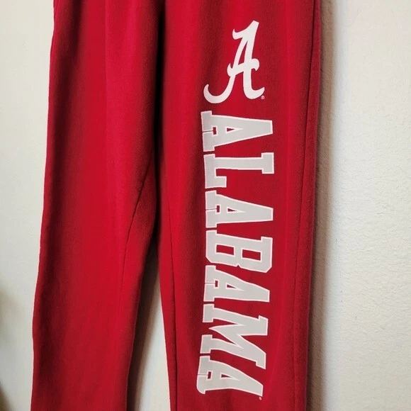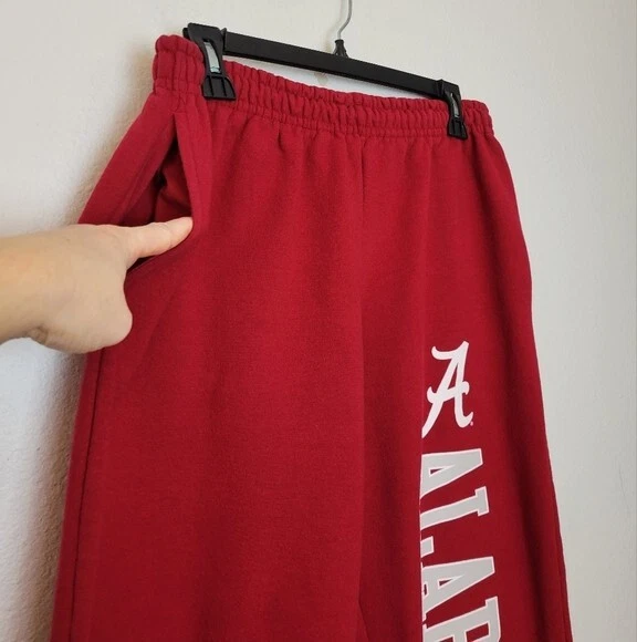 Gildan Dryblend Men's Sz M University Of Alabama Red Heavy Sweatpants Pockets. Ships With USPS Ground Advantage Mail -Heavy fleece lined Gildan sweatpants featuring the University Of Alabama Crimson Tide -Size Medium -Pull on styling, elastic waistband with adjustable inner drawstring -Side pockets -Warm fleece lining -Straight leg with logo graphic on the left leg -Dryblend material is made with a mix of preshrunk 50% Cotton 50% Polyester, holding up well after multiple washes -Measurements are approximately 13 in across with stretch 10.5 in rise 38 in long 31 in inseam -Preloved in great condition! -------------------------------------- Thanks for looking, feel free to reach out with any questions! I offer FAST shipping when payment is received. Have a a GREAT DAY! mandajane223