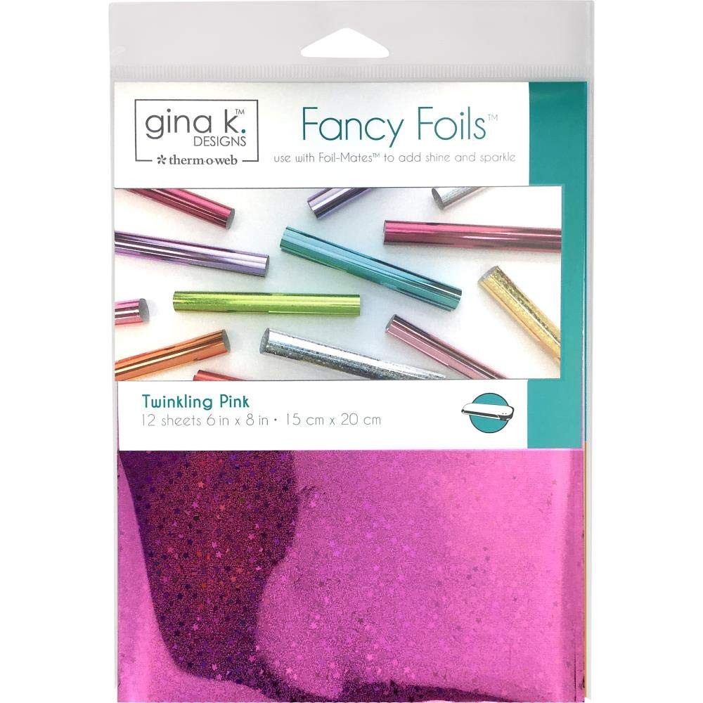 Add sparkle and shine with Fancy Foils. They can be used as a toner-reactive foil or a textile foil. Combine with Foil-Mates design elements to add as a background to a card or to create one-of-a-kind embellishments. Bundle contains three packages of Gina K. 6 x 8 inch reactive Fancy Foils Holographic mini-star pattern colors include TWINKLING PINK, GLIMMERING GOLD and BRILLIANT BLUE - 12 sheets of each color One Clear Storage Pocket - 6 3/4 x 9 3/8 inch tuck-flap pocket Add sparkle and shine with Fancy Foils. They can be used as a toner-reactive foil or a textile foil. Combine with Foil-Mates (sold separately) design elements to add as a background to a card or to create one-of-a-kind embellishments.