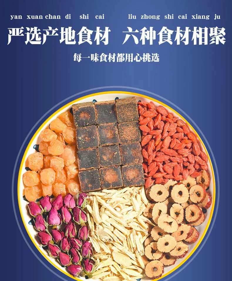Product:Tea & InfusionSales method:prepackagedEAN:Does not applyBrand:CIFbuygtin13:Does not applyProduction date:Update anytimeshelf life:18 months.Net content (specification):150gFood Craft:freeze-driedStorage method:Cool and dryForm:Tea MixDoes it contain sugar?:sugar freeRaw materials and ingredients:Longan wolfberry dried ginger rose red dates