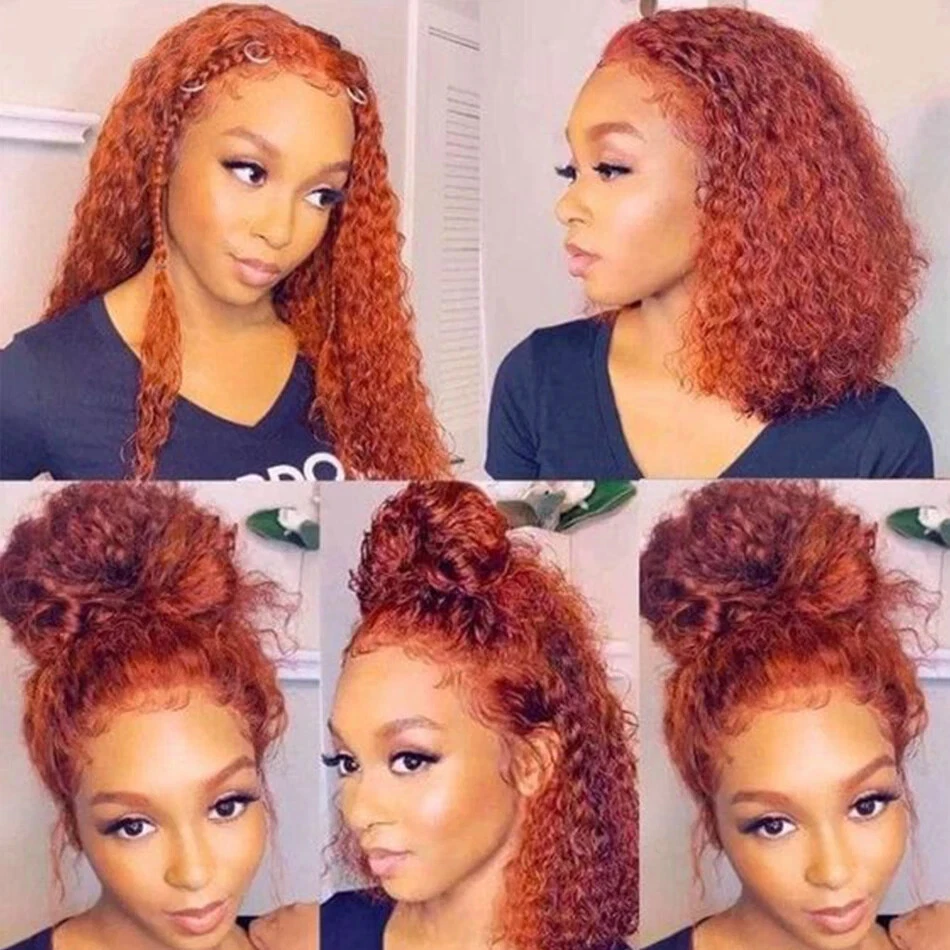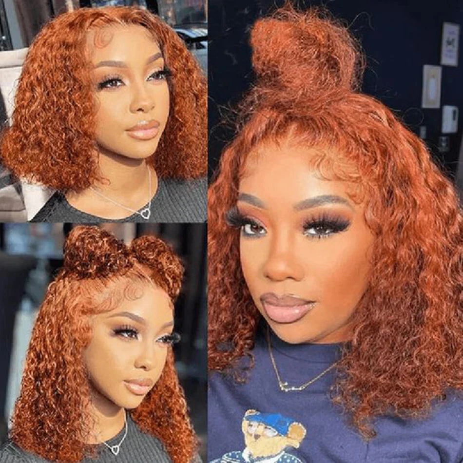 Ginger Orange 13x4 Glueless Curly Bob Brazilian Human Hair Wig Pre Plucked Lace Front