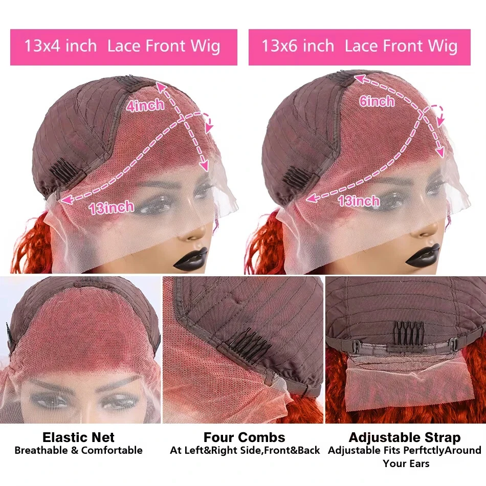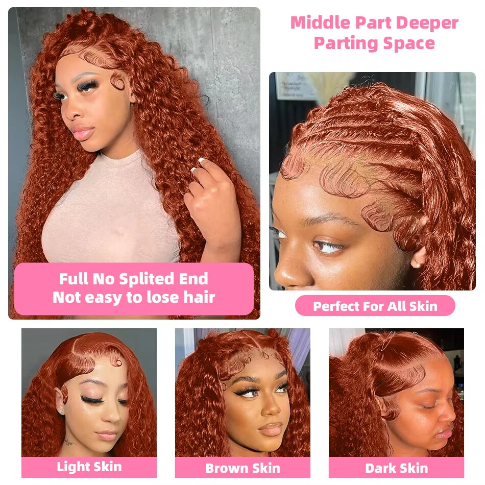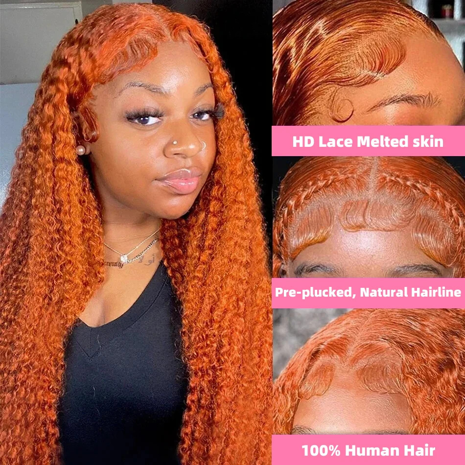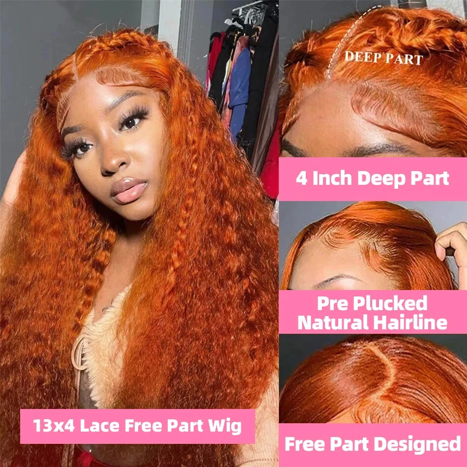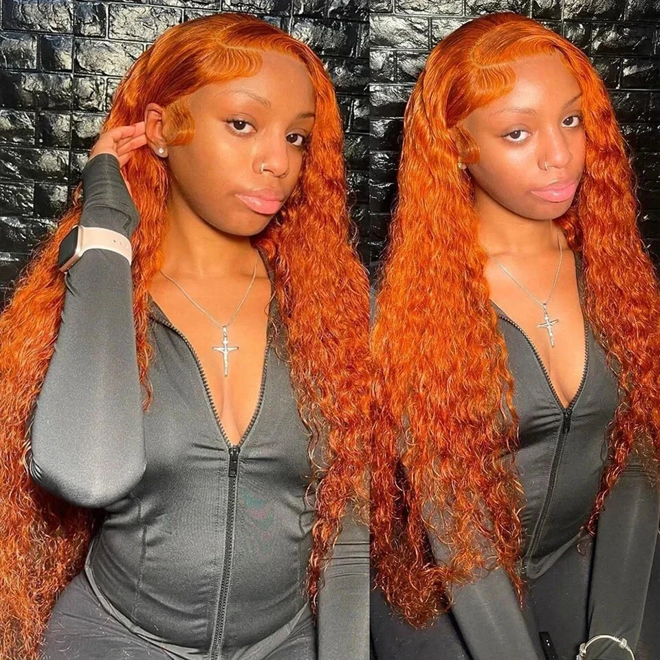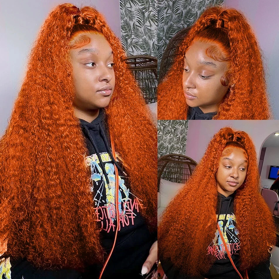 Ginger Orange Loose Wave 13x4 13x6 Lace Front Human Hair Wig Curly For Women