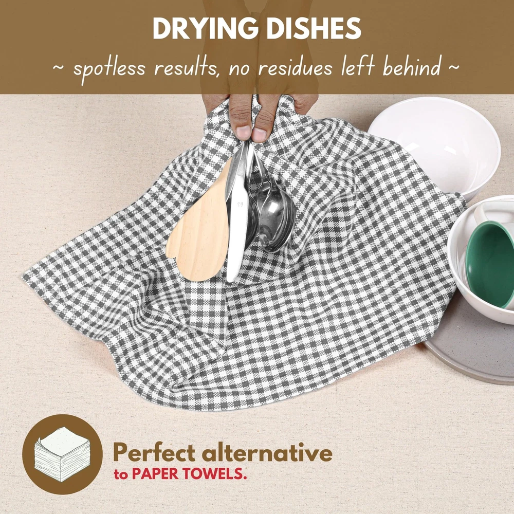 Elevate your kitchen with our Pack of 6 100% Cotton Gingham Farmhouse Mini Checkered towels. Crafted from premium cotton, these dish towels are ultra-absorbent, sturdy, and enduring. Their distinctive gingham check texture adds a chic touch to your kitchen decor, while their exceptional drying capacity makes them perfect for handling dishes, cutlery, and wiping counters. Our tea towels boast a trendy checkered design that comes in a range of hues to match any kitchen theme. The checks lend a contemporary edge, making them ideal for both traditional and modern kitchens. Choose your favorite color or one that complements your overall kitchen aesthetic.Our kitchen towels measure a generous 15x25 inches, so they're the perfect size for cleaning larger utensils and dishes. They're also ideal for drying hands and wiping surfaces, ensuring you have enough coverage for any kitchen task. The ample size makes them effortless to fold, hang, and store. You'll love how our tea towels are machine washable, so you never have to worry about losing their absorbency or vibrant color after numerous washes. Additionally, our towels are lint-free, ensuring that they won't leave any fluff or debris on your kitchenware or counters. In addition to their practical features, our 100% Cotton Gingham Mini Check towels are environmentally friendly. Made of cotton, these towels are biodegradable and recyclable, making them an eco-conscious option for your kitchen. Our pack of 6 dish towels delivers an ideal blend of style, functionality, and durability, making them a smart investment for your home. Whether you're drying dishes, wiping counters, or just sprucing up your kitchen, these towels will make your kitchen chores easy, quick and stylish. Place your order today and give your kitchen an on-trend and useful upgrade. 100% COTTON MATERIAL: Enjoy our soft, durable, and absorbent towels, perfect for everyday kitchen tasks. PERFECT SIZE: Each towel measures 16x26 inches (40x66 cm) and is tailored with secure stitching, offering perfect coverage for all your kitchen needs. CLASSIC MINI CHECK GINGHAM DESIGN: Featuring a timeless small checkered pattern, this style adds a charming, vintage touch to your kitchen, perfect for everyday use and seasonal décor. SUPER ABSORBENT: Say goodbye to spills and wet dishes! Our towels soak up water and messes in a flash, making your kitchen cleanup quick and effortless. QUICK-DRYING DESIGN: The specially woven fabric enhances airflow, allowing the towels to dry faster and stay fresh for every use. MULTIPURPOSE USE: Ideal for drying dishes, cleaning surfaces, wiping hands, and handling hot cookware. CONVENIENT HANGING LOOP: Easily hang your towels for quick drying and easy access. MACHINE WASHABLE & DURABLE: Designed to withstand frequent washing while maintaining softness and absorbency. PERFECT FOR HOME & GIFTING: A practical addition to any kitchen, great for housewarmings, holidays, and everyday use. FADE-RESISTANT COLORS: Stays vibrant wash after wash, ensuring a fresh look every time.