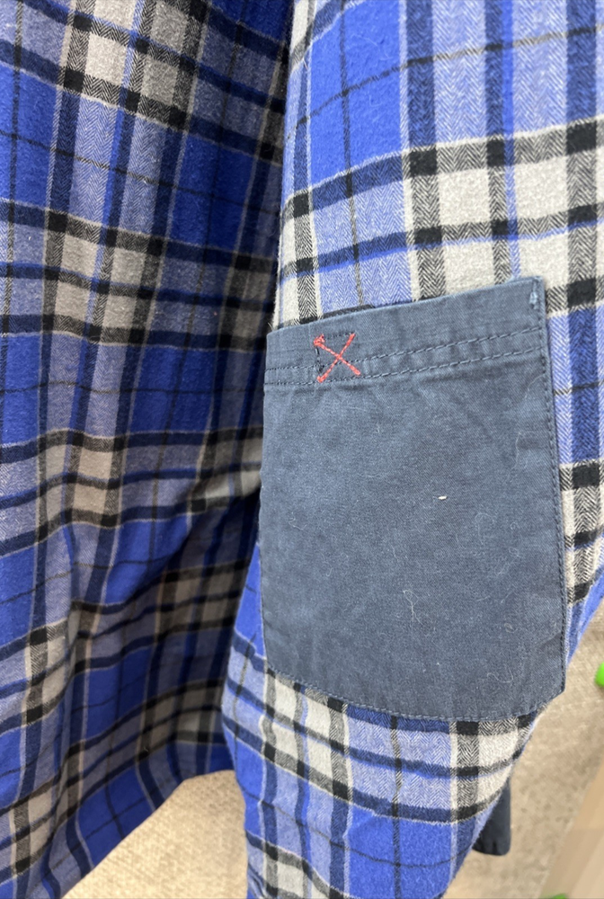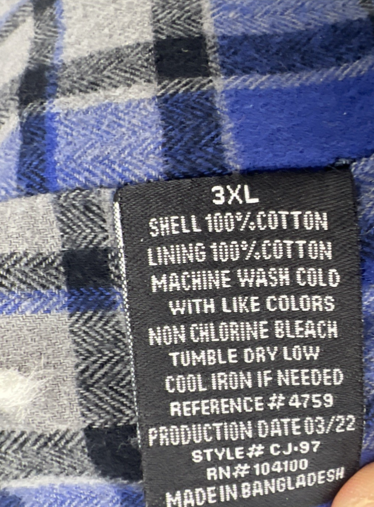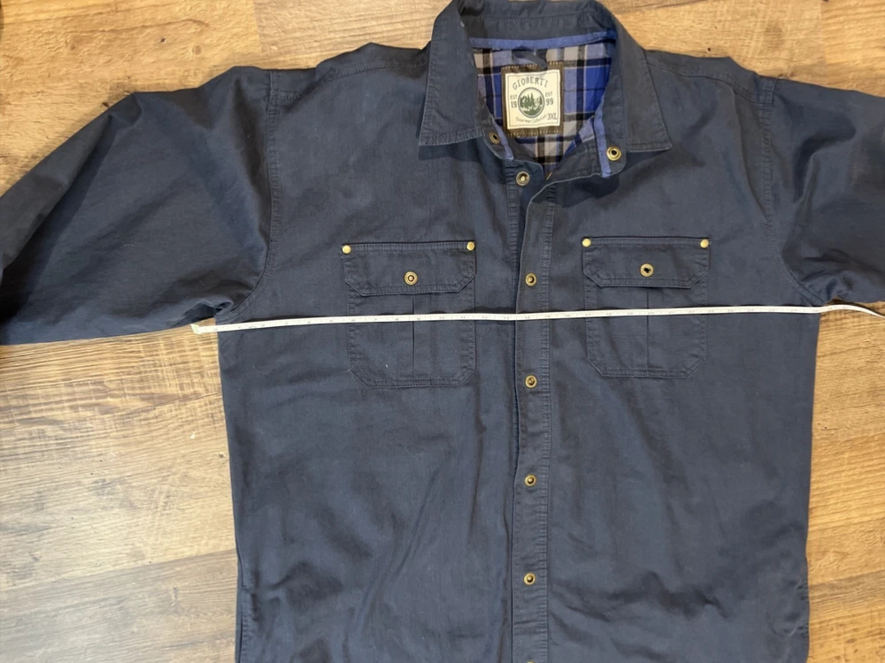 Gioberti Mens Shirt Jacket Brushed Blue Twill Flannel Lining Size 3XL 100% Cotton Twill Outside and Flannel Lining Outside Side Slash Pockets 1 Inside Pocket Sold As Is No Returns