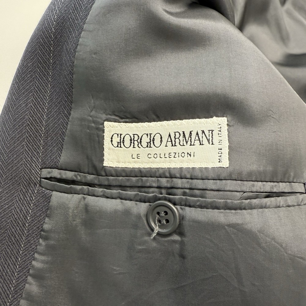 Giorgio Armani Le Collezioni Sportcoat Blazer Suit Jacket Mens 44R 100% Wool Gray Herringbone *One chest pocket *Two lower pockets *Three inner pockets *Ventless *Two button sleeves *Subtle stripe and herringbone pattern Condition: Small thread pull on sleeve. Lining - stretched seams at the armpits. Please review all photos. Overall in good condition. Written measurements provided in photo. Measurements taken with garment lying flat. Fit tip: Compare the measurements of this item with those of a well-fitting garment that you currently own. Additional measurements available upon request. Let me know if you have any questions and thank you for supporting small business!