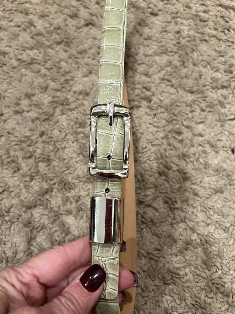 Department: Women Features: Rectangular Country/Region of Manufacture: Italy Handmade: No Theme: Classic gtin13: Does Not Apply Brand: Giorgio Armani UPC: Does Not Apply Type: Belt Buckle Pattern: Solid Material: Leather Vintage: No Color: Green