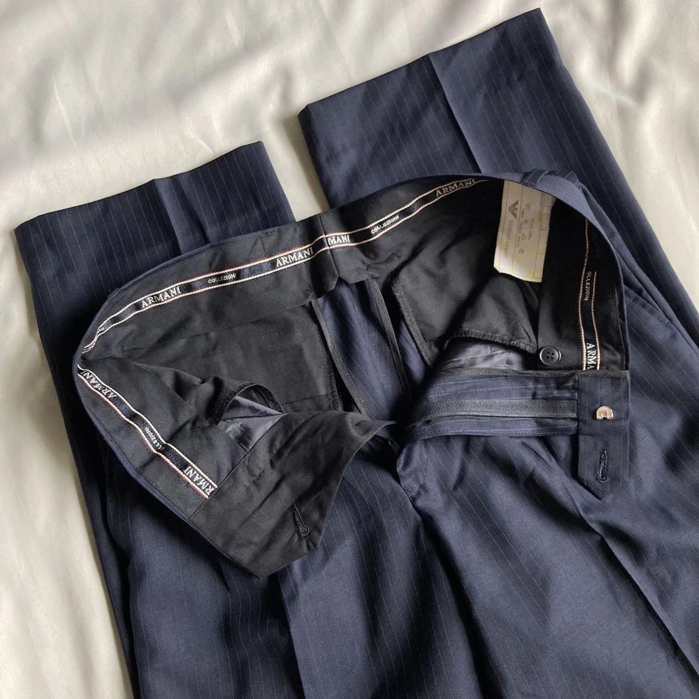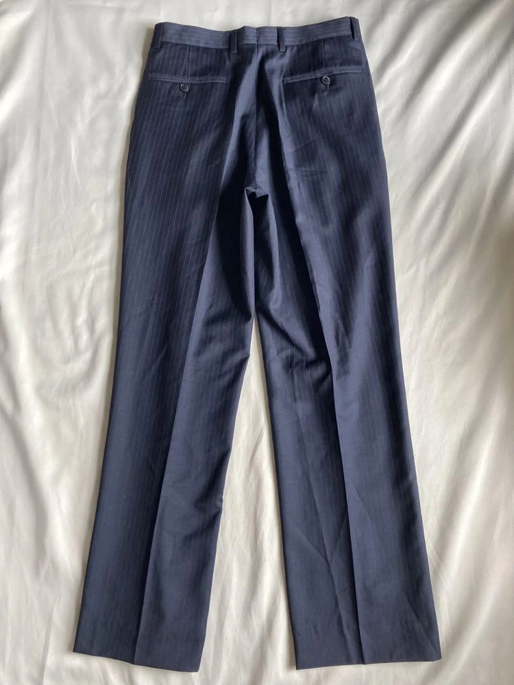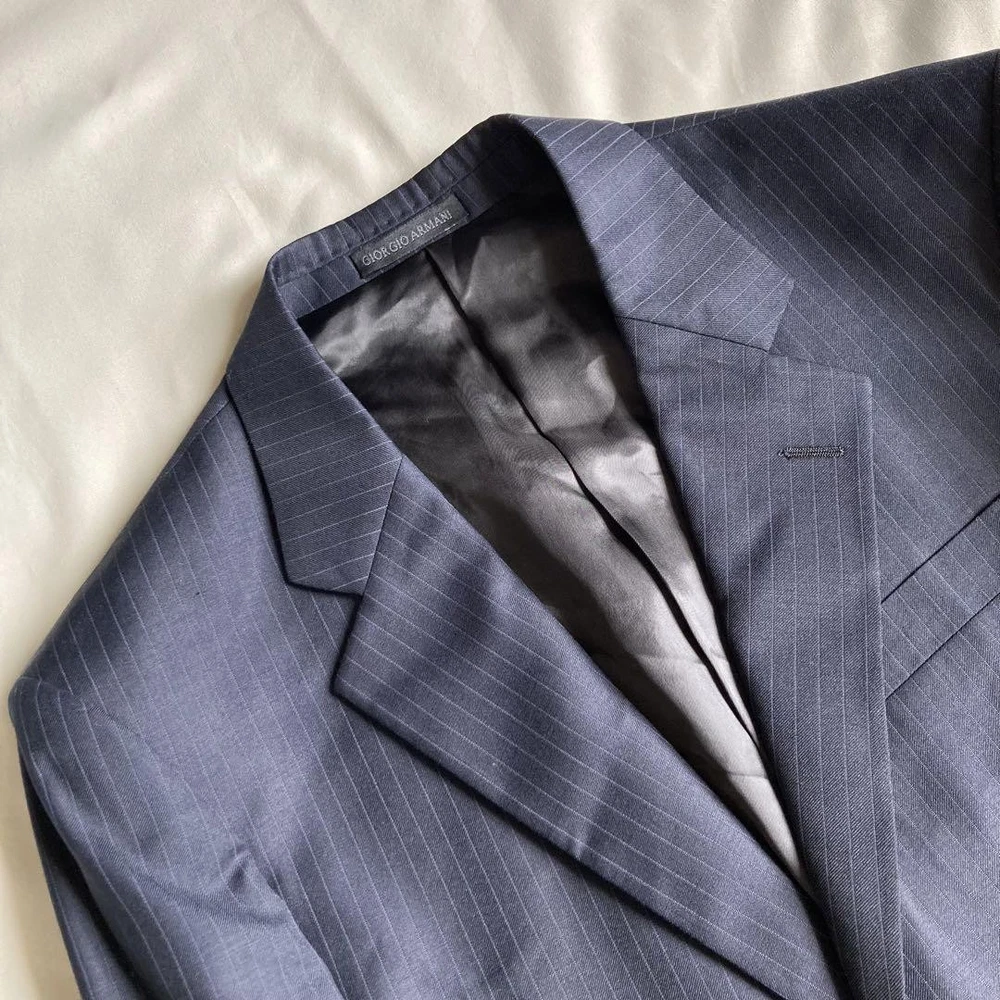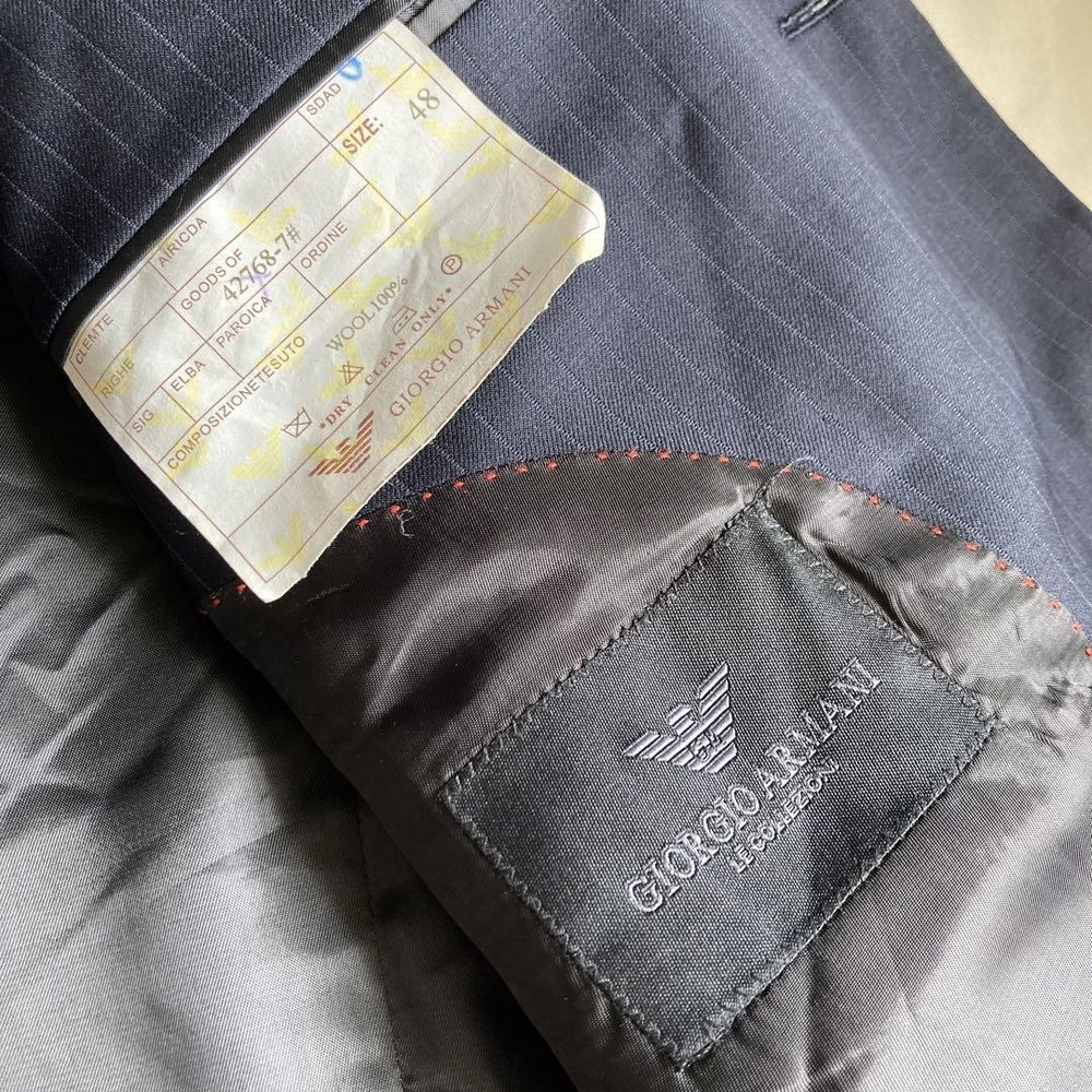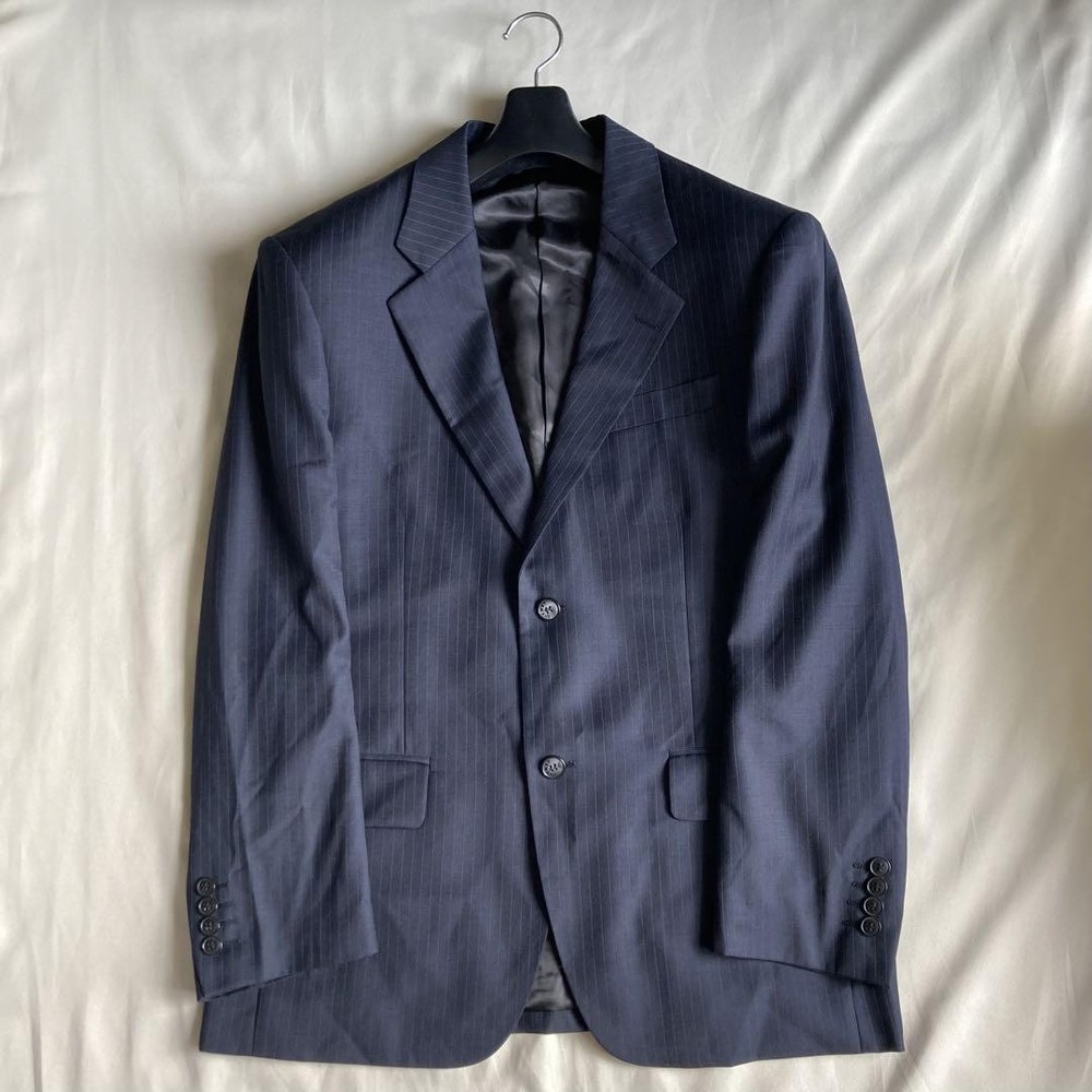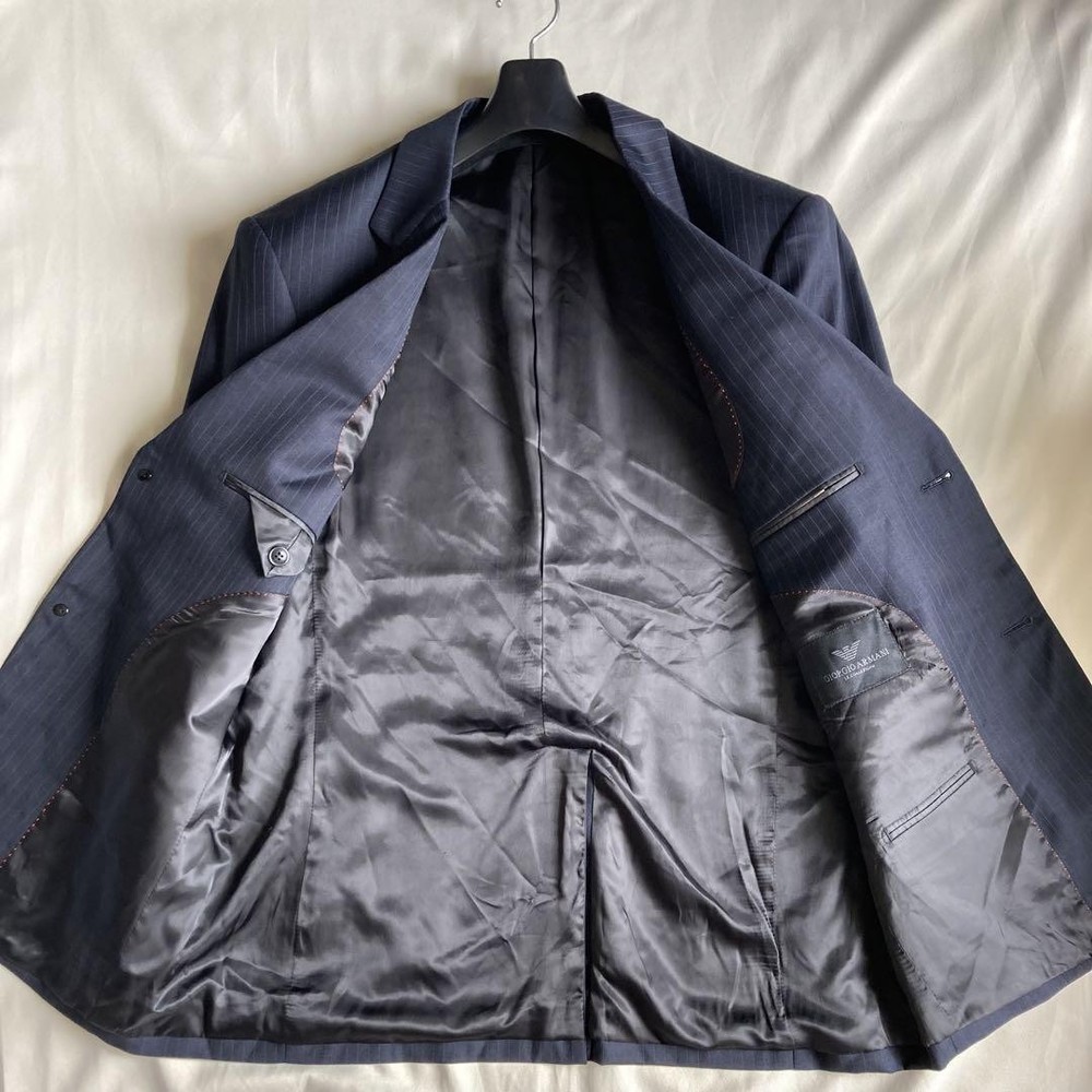 Description Thank you for your interest. Brand: GIORGIO ARMANI Giorgio Armani Product: Single striped suit 100% wool set Size: Jacket Length: 74cm Width: 53cm Shoulder width: 48cm Sleeve length: 62cm Pants Waist: 75cm Inseam: 78cm Rise: 29.5cm Hem width: 22.5cm Hip: 100cm Please allow for some error. Color: Navy Description: Armani suit◎ Dark navy blue with stripes of the same color. The fabric has a natural luster and looks different depending on the light. No noticeable scratches or stains◎ Please note that this is a used item and may have some wrinkles and small scratches. Hangers are not included. This item is not new, but a used item that was given away. Please check the photos for the condition of the item. Please understand that the condition of the item is subjective and the standard of evaluation and feeling may vary from person to person, so please be aware that this is a used item before bidding. Please check the photos for the condition of the item, such as scratches and stains. To prevent problems, please feel free to contact us if you have any questions about the size or other details of the item. We will be happy to adjust the price. We will do our best to ship your order as soon as possible. We will do our best to ship as soon as possible, but there may be delays during the busy harvest season. Remarks All the products we sell are obtained and sold by pawn shops that are authorized brands, so all the products we handle have been authenticated to meet our strict standards for authenticity, so please buy with confidence. Payment Supports managed payments Please pay within 5 days after auction is finished. About Us We are located in Japan. It's our pleasure to make you happy by proposing our recommend item. If you have any questions or request about items, please feel free to ask us. International Buyers - Please Note: -Importduties, taxes, and charges are not included in the item price or shipping charges. These charges are the buyer's responsibility. -Please check with your country's customs office to determine what these additional costs will be prior to bidding/buying. -These charges are normally collected by the delivering freight (shipping) company or when you pick the item up - do not confuse them for additional shipping charges. -We do not mark merchandise values below value or mark items as - gifts - The US and International government regulations prohibit such behavior. Thank you for your understanding