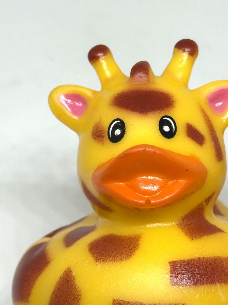 Giraffe Rubber Duck 2” Ducky Bath Pool Jeep Toy. Note: Item has a nick on the bottom beak/surface scratches; shown in photos! Thank you for stopping by!