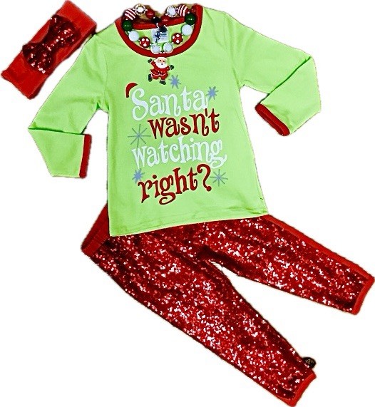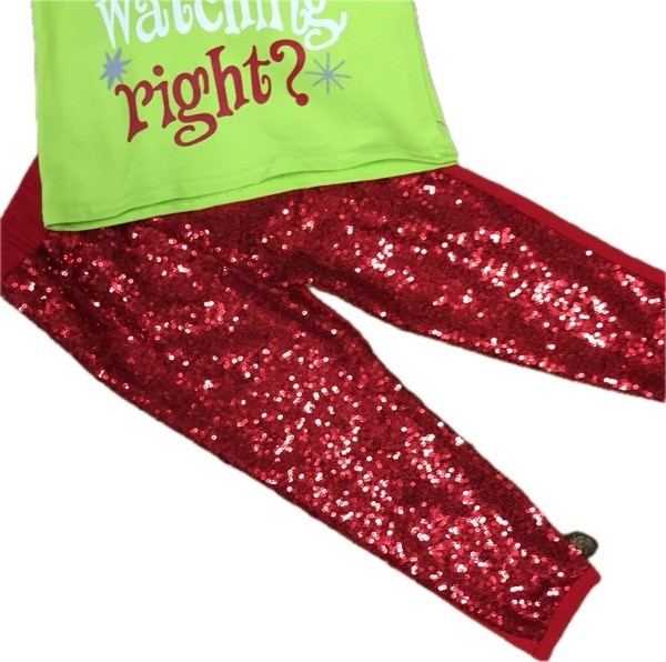 Santa Wasn’t Watching Right? Lime Green & Red Girl’s Sequin Christmas Outfit. Pants are lined so sequin doesn’t touch skin. Boutique Style - Super Comfy XS 18-24M TTS -True To Size ACCESSORIES NOT INCLUDED - If the accessories are available, they will be listed separately. I have several other sizes up to 6/7 in this same outfit. Check my other listings for additional sizes and plenty more holiday outfits, dresses, and accessories. I’ll be listing all week. Will ship same business day or next depending on time of order.