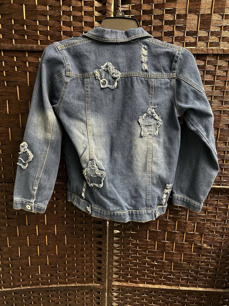 Girls Charmdeer Blue Jean Jacket Frayed Stars Size S/M