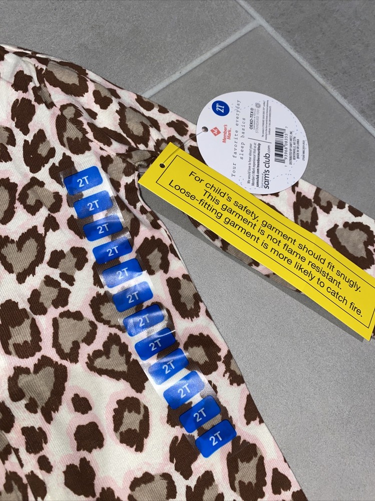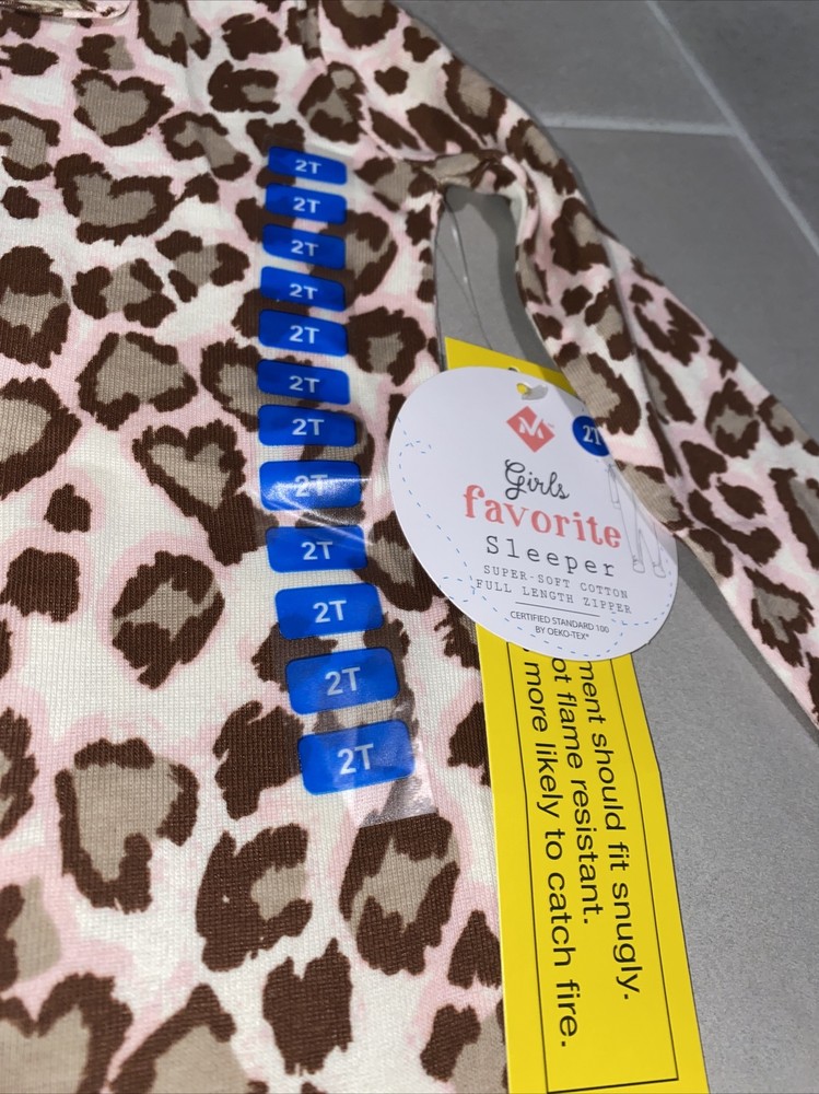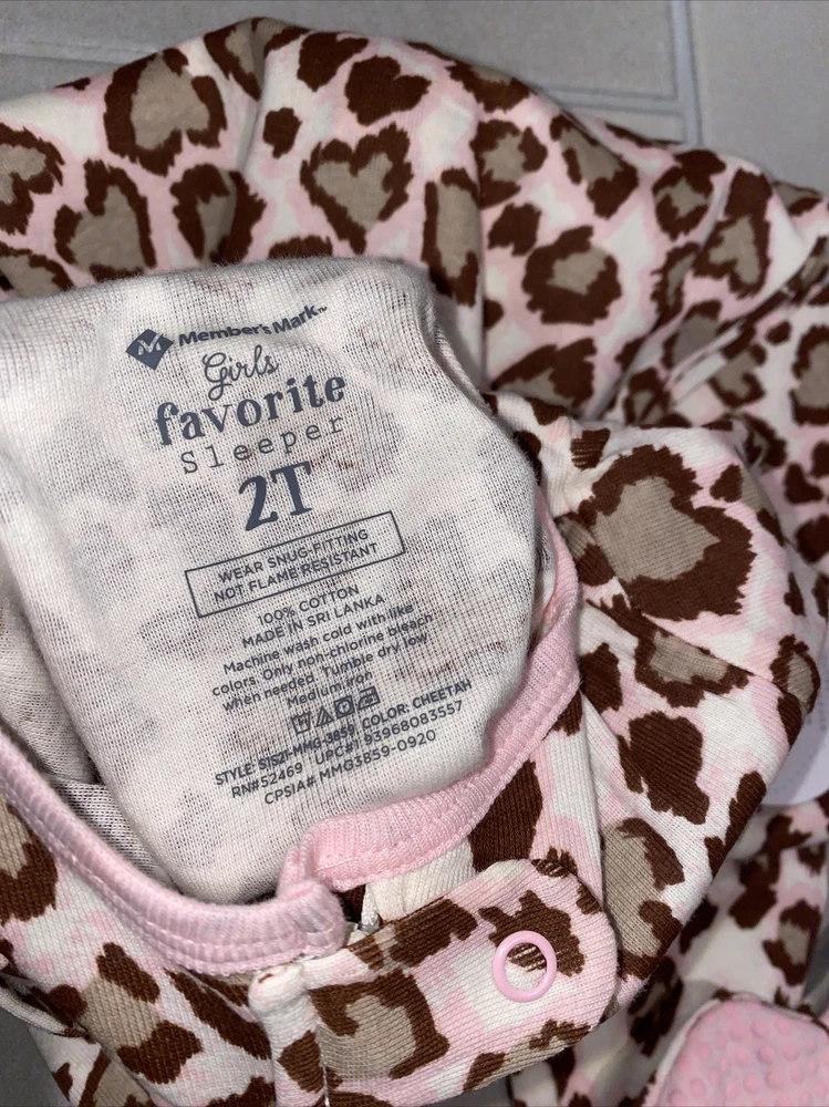 Members Mark Girl’s Favorite Sleeper Footed Full Zip 100% Cotton 2T Cheetah. Condition is "New with tags". Shipped with USPS First Class.