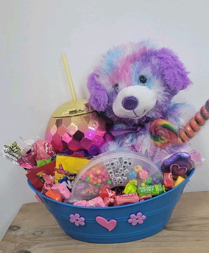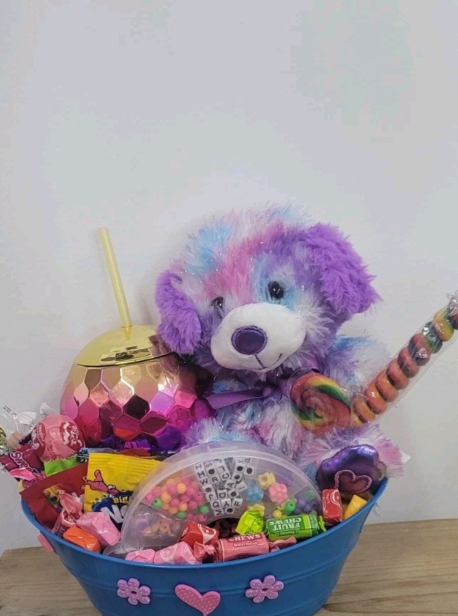 The Girls GIFT BASKET is a multicolored gift basket designed for young girls of any age. This basket can be perfect for any occasion, making it a versatile option for gift-giving. It contains a thoughtful selection of items that are sure to delight and entertain any young girl, without the need for personalization. The basket does not include any antique items, offering a more modern and playful gift option.