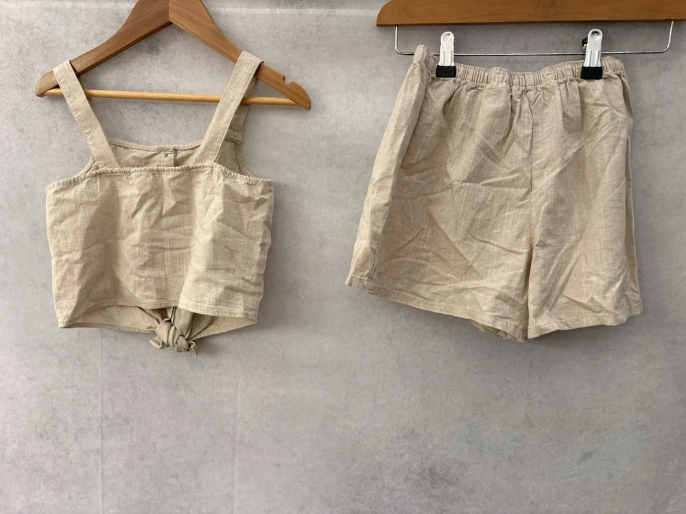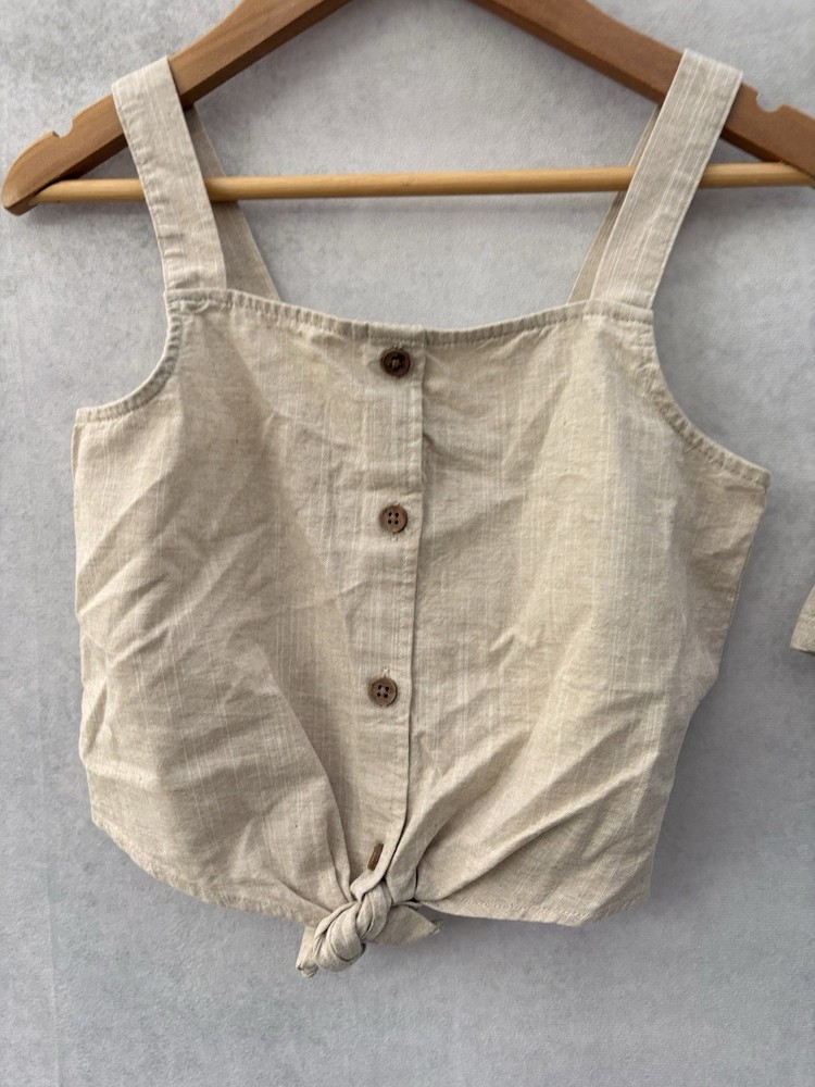 Type: Outfit/Set Brand: H&M Style: Shorts Set Season: Summer, Spring Number of Pieces: 2 Piece Country of Origin: Bangladesh Theme: Holiday Sleeve Length: Sleeveless Material: Cotton Colour: Beige Size: 7-8 Years Occasion: Casual, Party Fabric Type: Blended Fabric Set Includes: Tank, Shorts Department: Girls