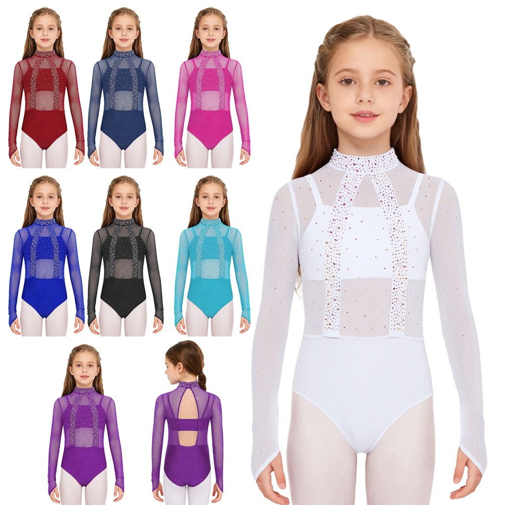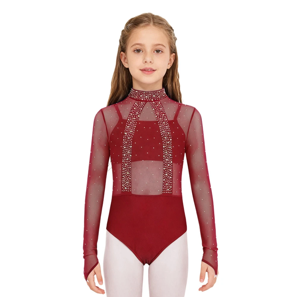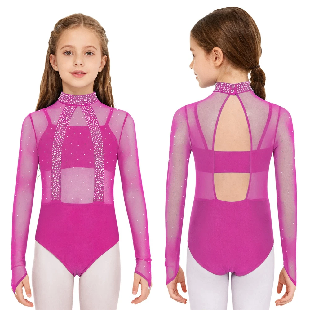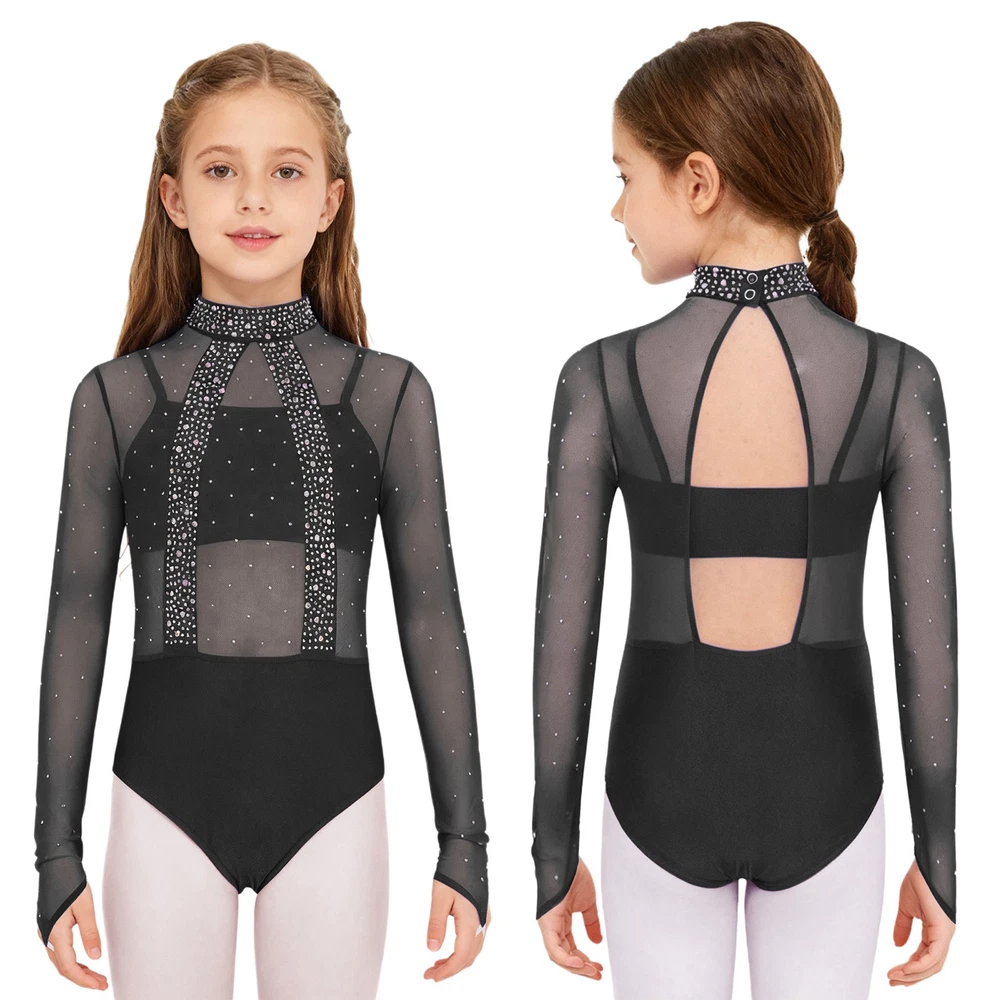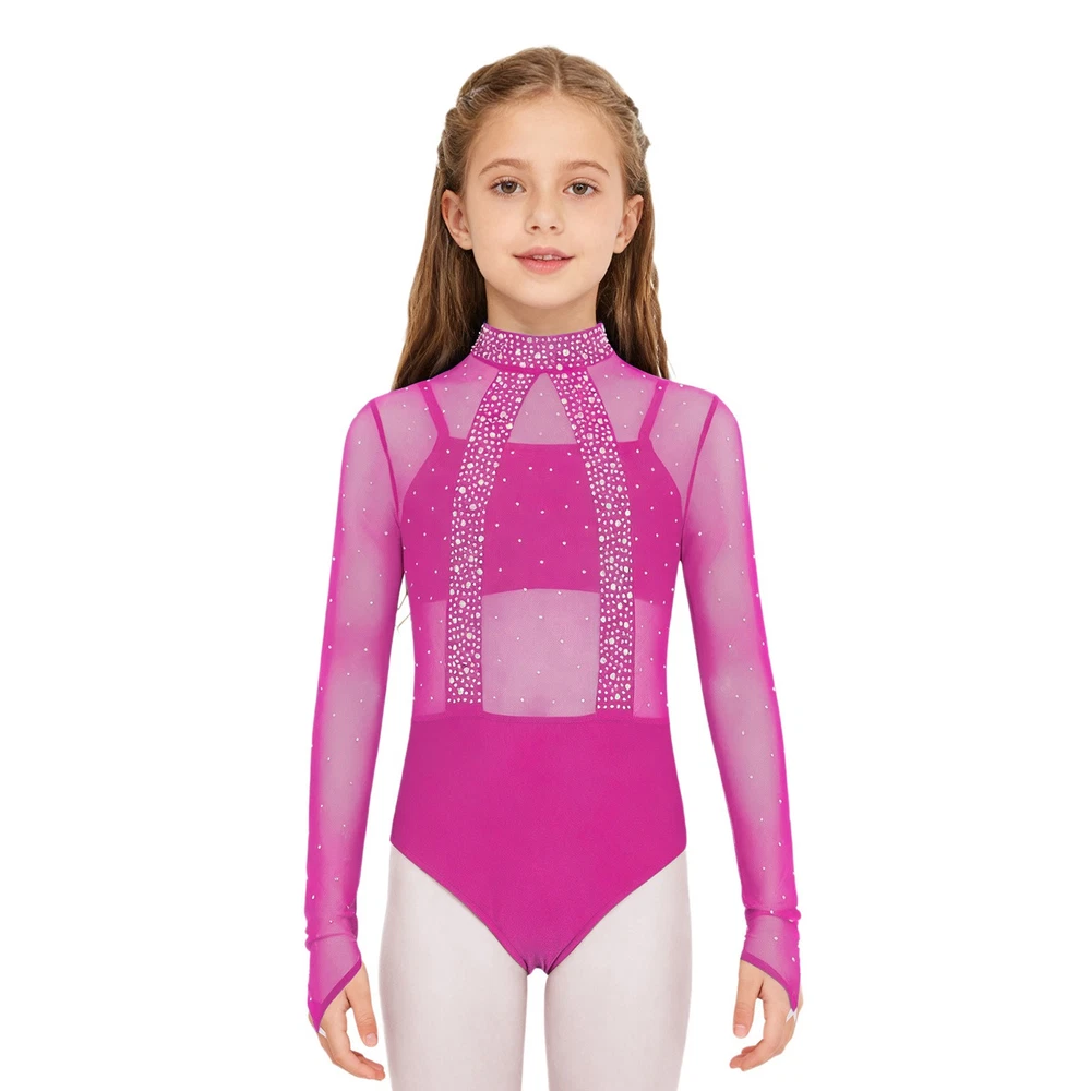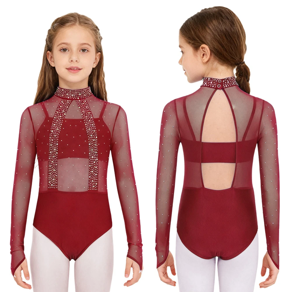 Girls Leotard Sparkle Gymnastics Shiny Bodysuit Stage Performance Activewear