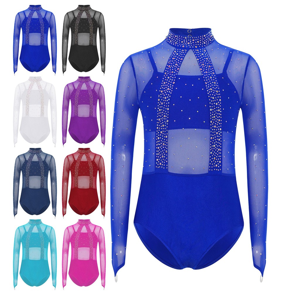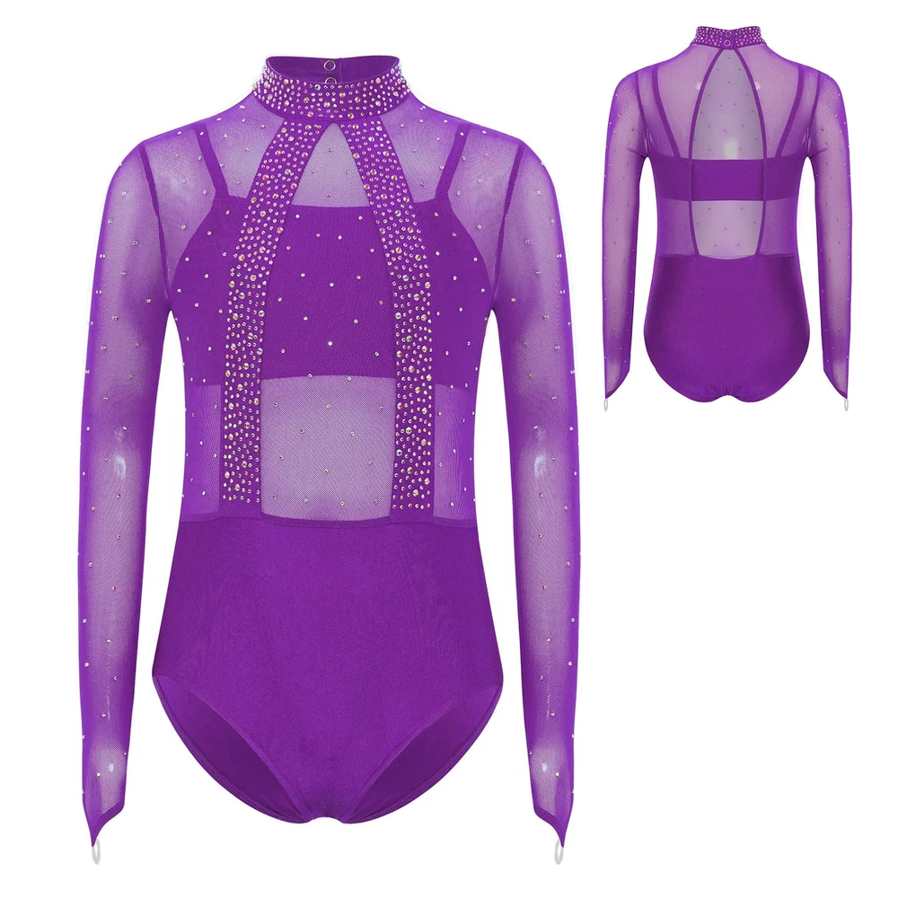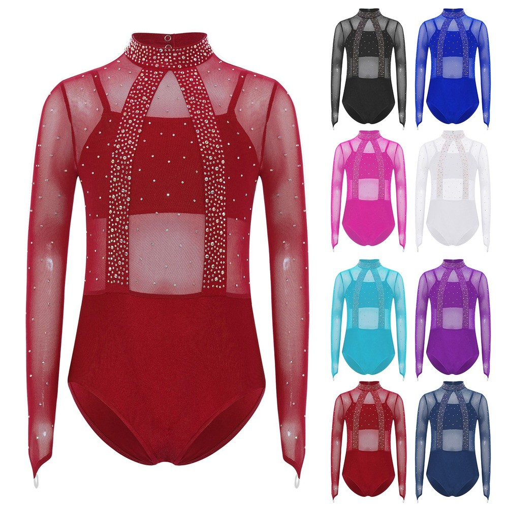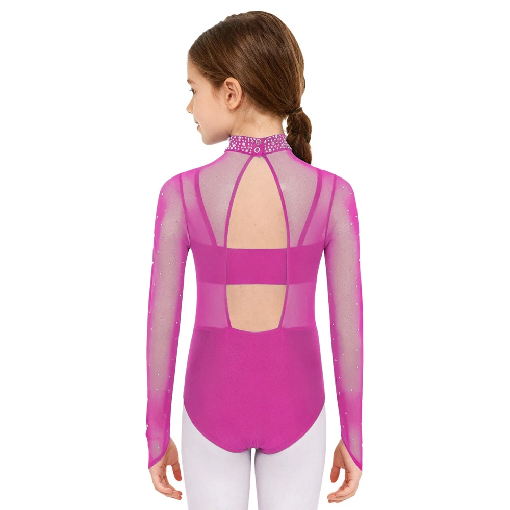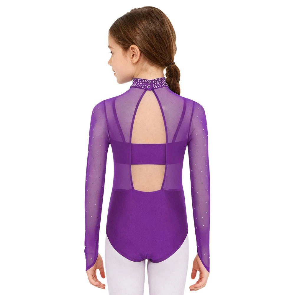 Girls Leotard Sparkle Gymnastics Shiny Bodysuit Stage Performance Activewear