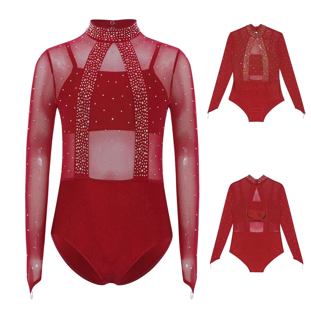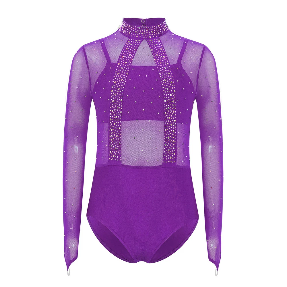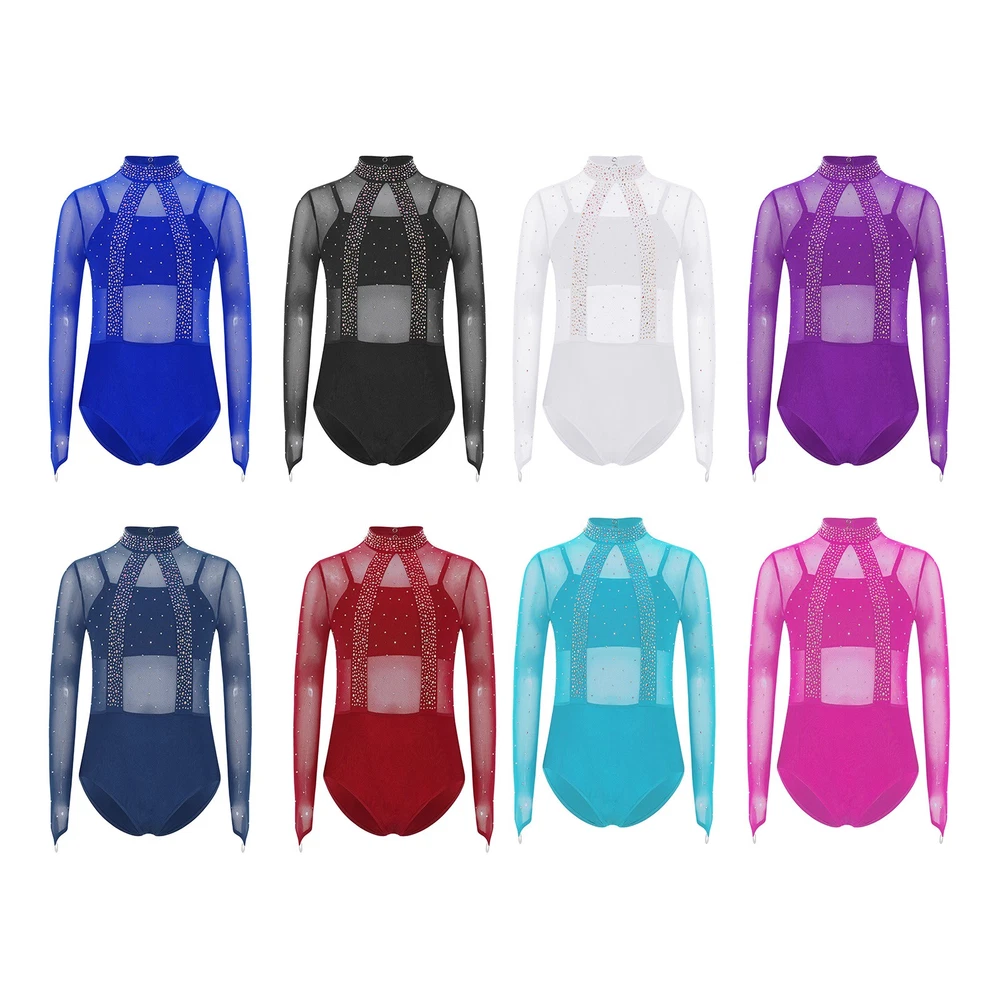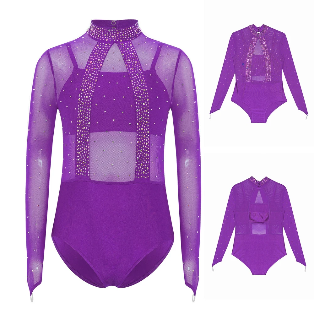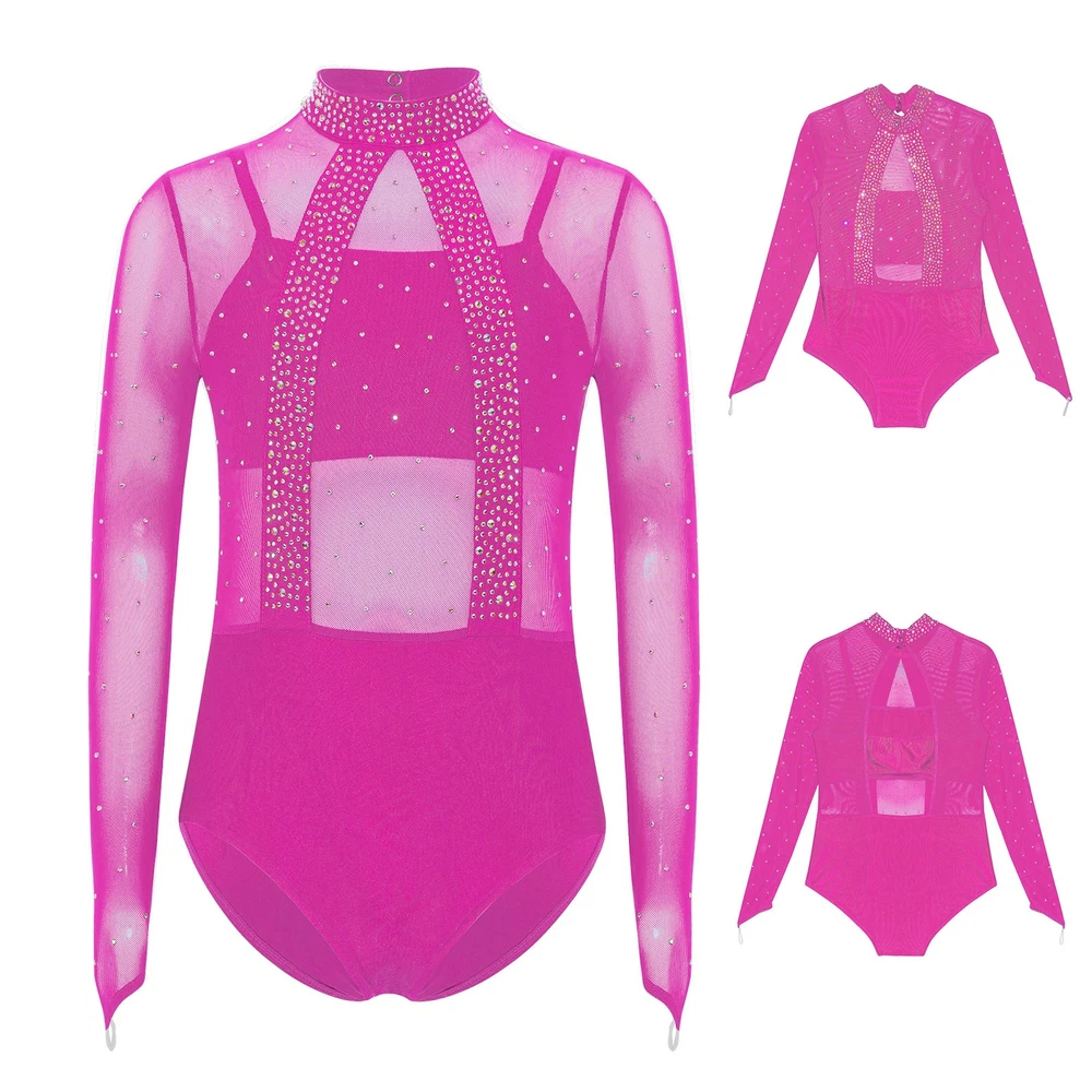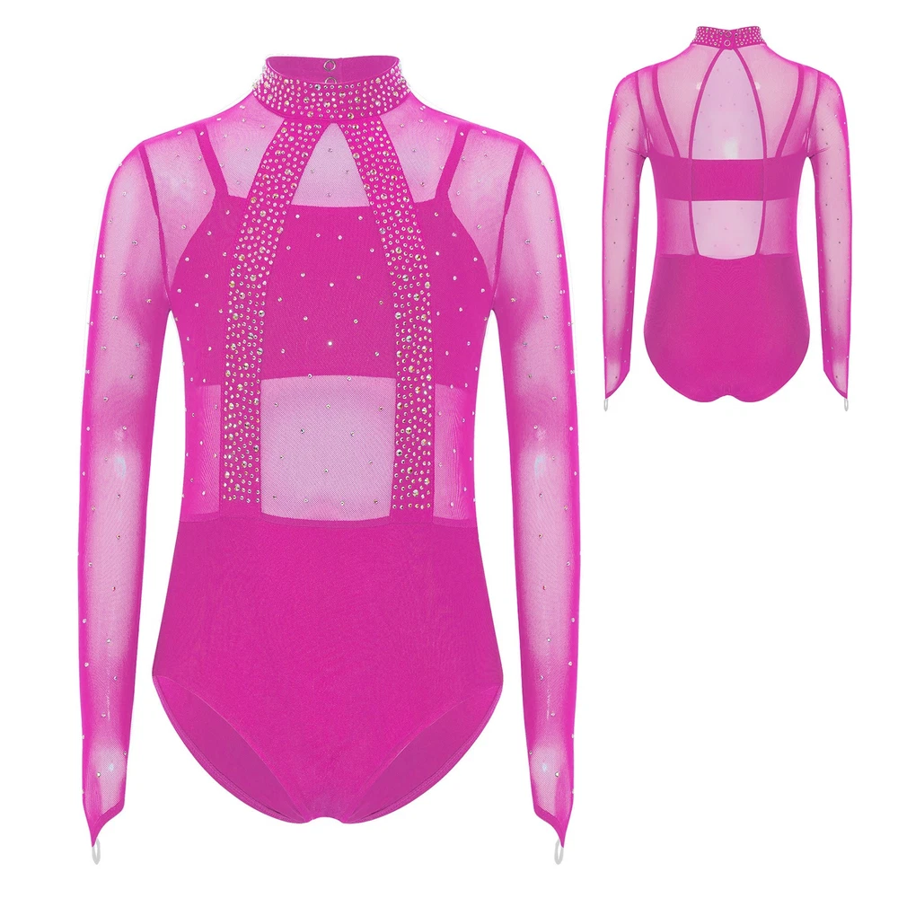 Girls Leotard Sparkle Gymnastics Shiny Bodysuit Stage Performance Activewear