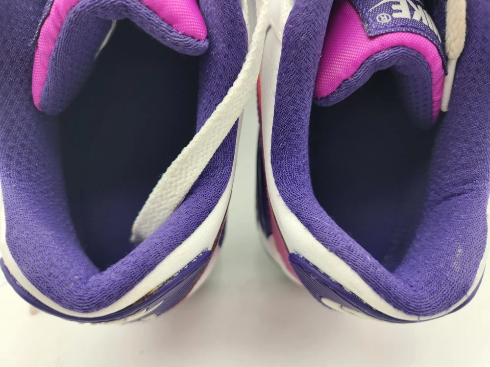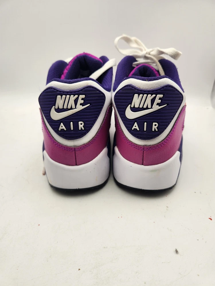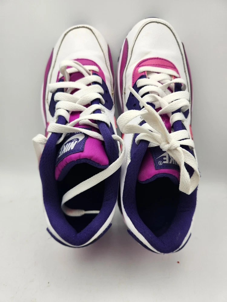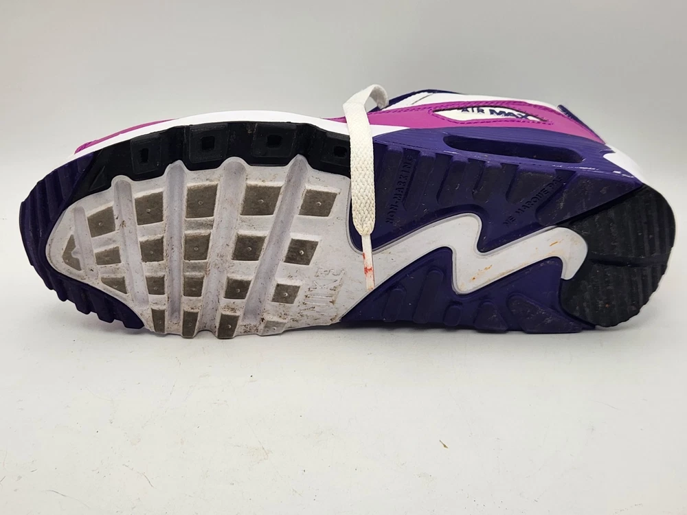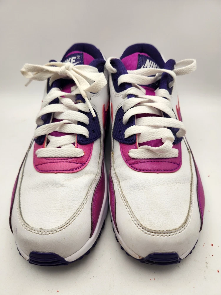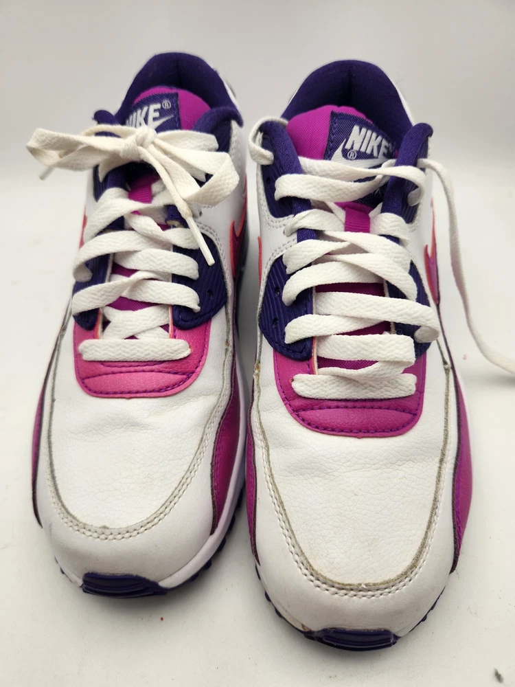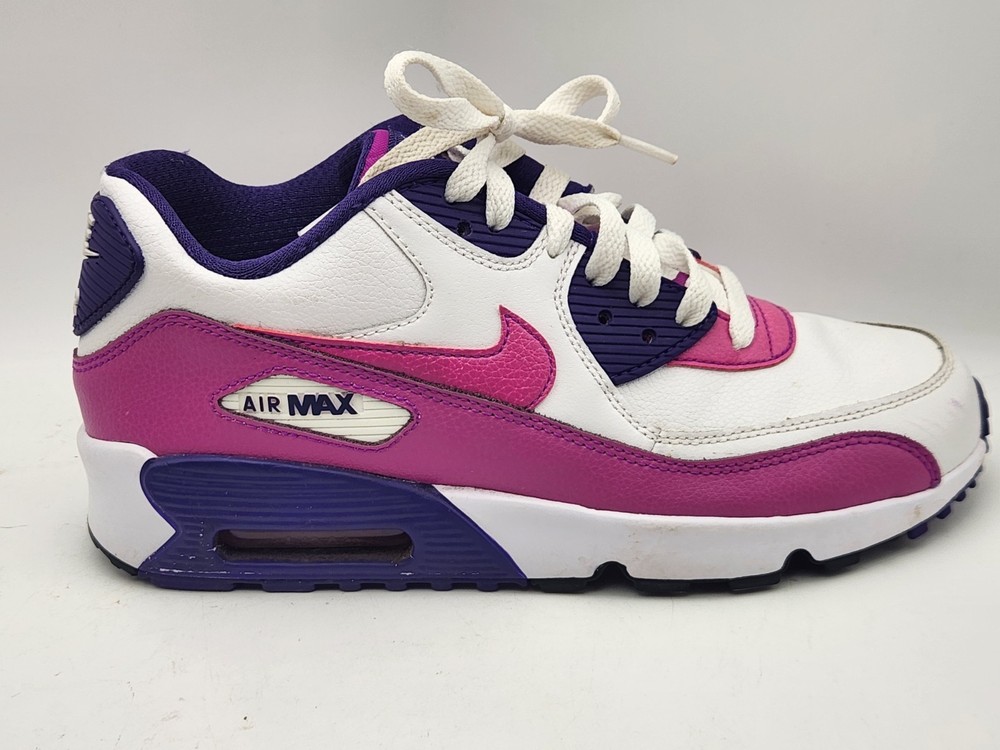 These Girls Nike Air Max 90s in size 6.5Y are the perfect combination of style and comfort for young athletic girls. With a low-top design, round toe shape, lace-up closure, and rubber cleat type, these shoes are ideal for activewear occasions like running and jogging. The Nike Air Max 90 model features moderate cushioning level and logo accents, making them a trendy choice for the 90s-themed fashion. Perfect for summer, fall, and spring seasons, these sneakers are a must-have for any active young girl's wardrobe. See pictures closely before purchasing. Nice! Thanks for looking.A22