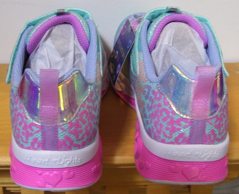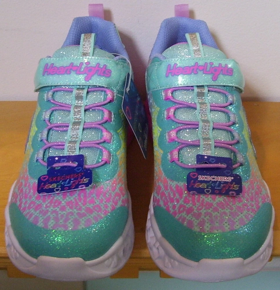 Big Girls/Youth Skechers Flutter Heart On/Off Lights LOVES WILD Turquoise/ Multi Sneakers. Size 4. New without box. Smoke and Pet free home. Winning bidder to pay within 3 days listing end. Check out my other listings for more great deals! RETURN POLICY DETAILS Returns are accepted with prior approval ONLY if item is misrepresented in the listing. You must contact me first before returning an item. I do NOT accept returns for buyer choosing the wrong size/item not fitting. There are NO returns/refunds on pageant and special occasion wear.