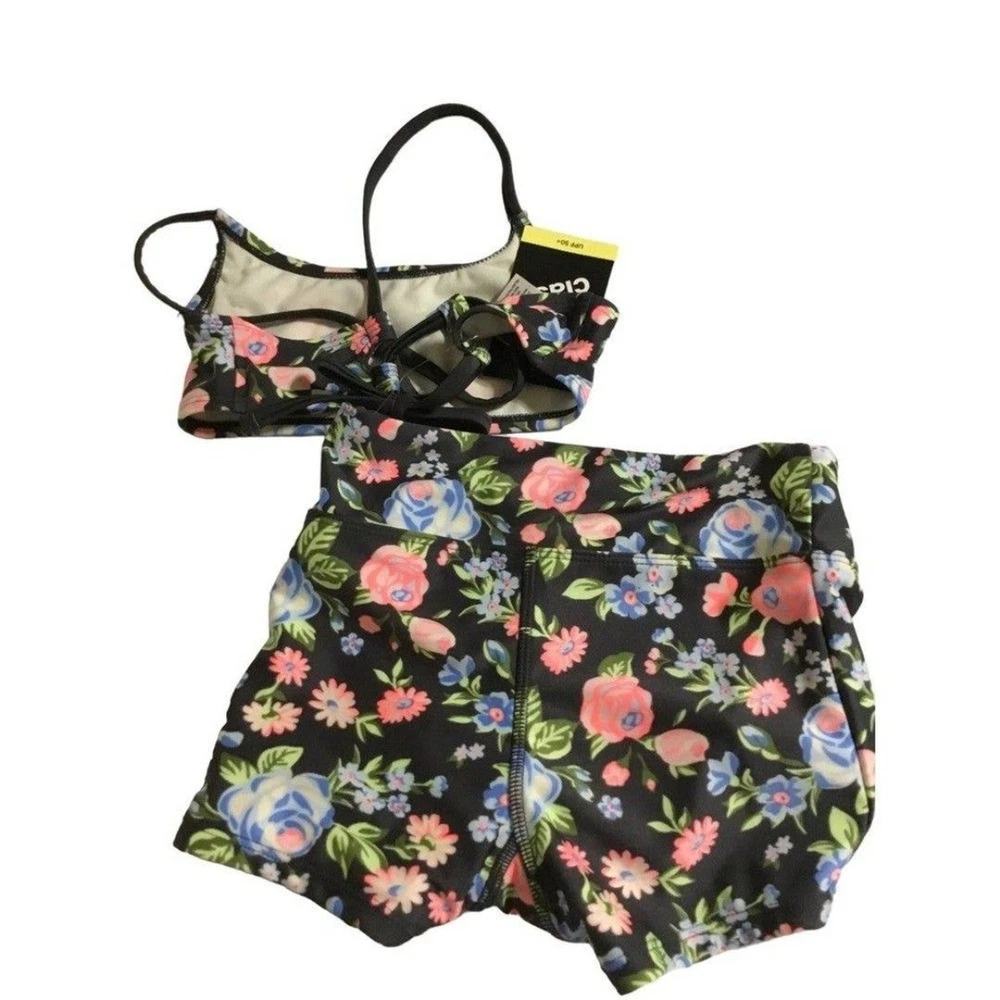 Girls' Swim Floral Bike Shorts with Adjustable Back Top Set NWT 6/7