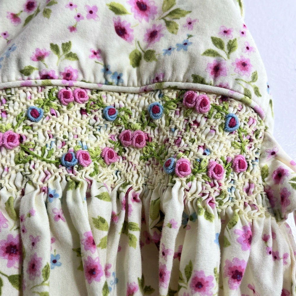$ 8.72VTG Y2K Gymboree Denim Dress Floral Embroidery Strappy ALine 3T 4T Rainbow Tag