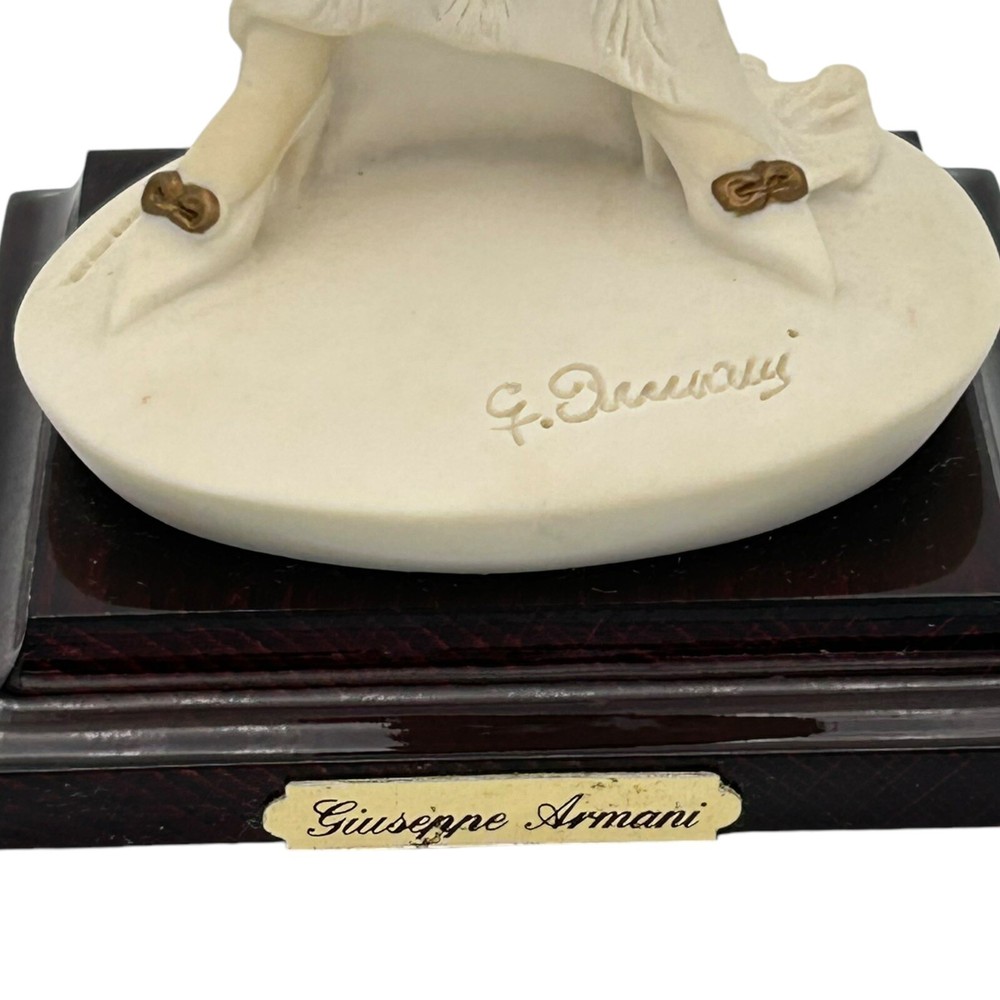 A terrific art piece from an extraordinary Italian artist Giuseppe Armani. Known for his work with cold cast porcelain and figurine designs. The figurine has a wooden base and little name plaque. Item is in like-new condition and shows no major damage. Expect the possible little surface scratches but nothing that takes away from its charm. Please see all images for further details. Giuseppe Armani was an Italian sculptor and artist. Born in 1935 he died in 2006. From an early age he was recognized as a gifted artist. Giuseppe attended the Academy of Fine Arts in Florence and became well known from his artwork at the Art Gallery in Pisa. In 1973 he associated with the Florence Sculture d'Arte in Tuscany. Armani's works are known worldwide for their detail, life, and colors. giuseppearmani.org Be sure to see all our other items for possible bundle and shopping deals! Will pack with extra care and attention that fragile items require. Quick shipping guaranteed. Returns accepted at buyer’s expense. Display boxes and props not included unless otherwise noted. Own this beautiful item! We are a reputable seller! Check out our reviews to see what customers say about our products and service. You won’t regret trusting Fairfield for your online purchase.