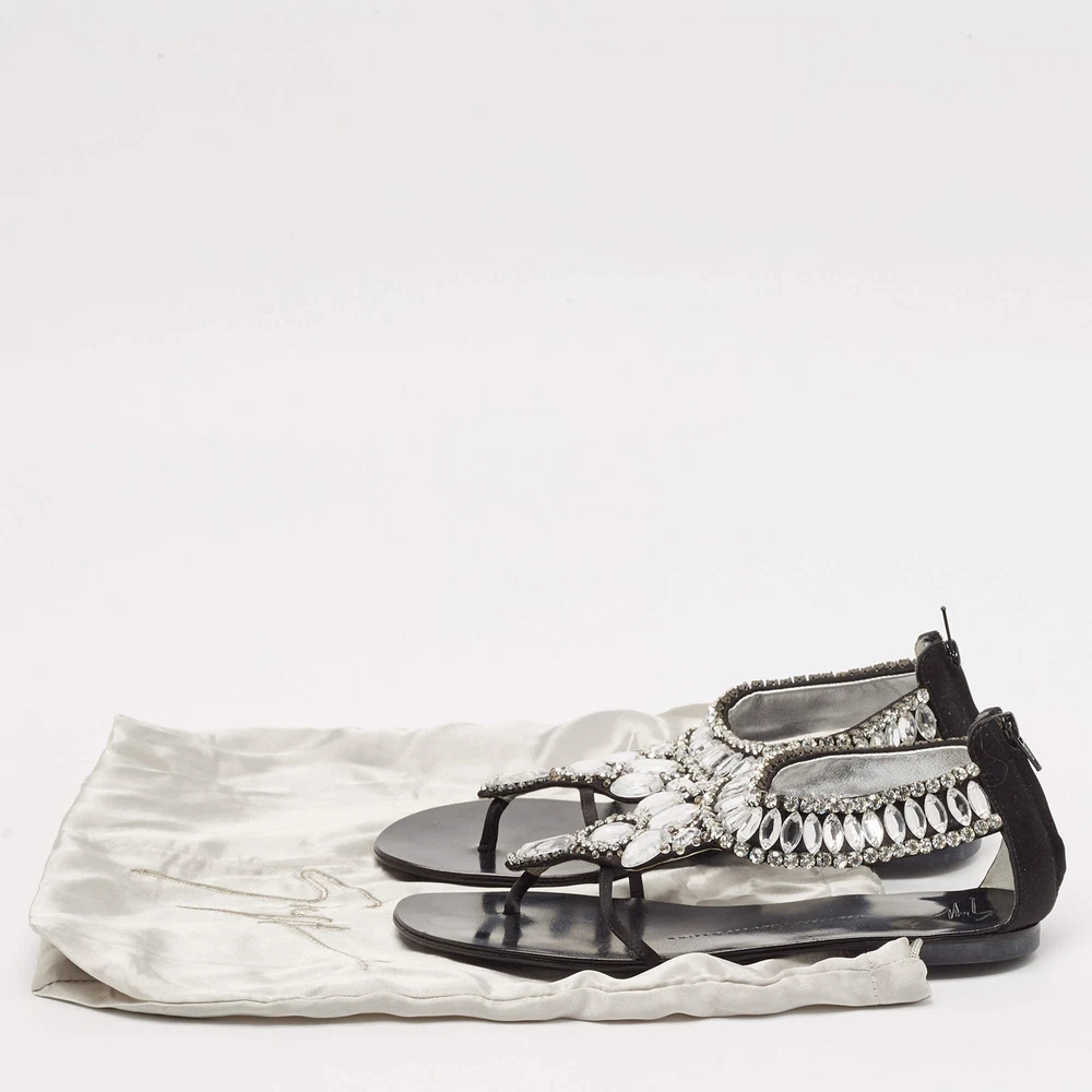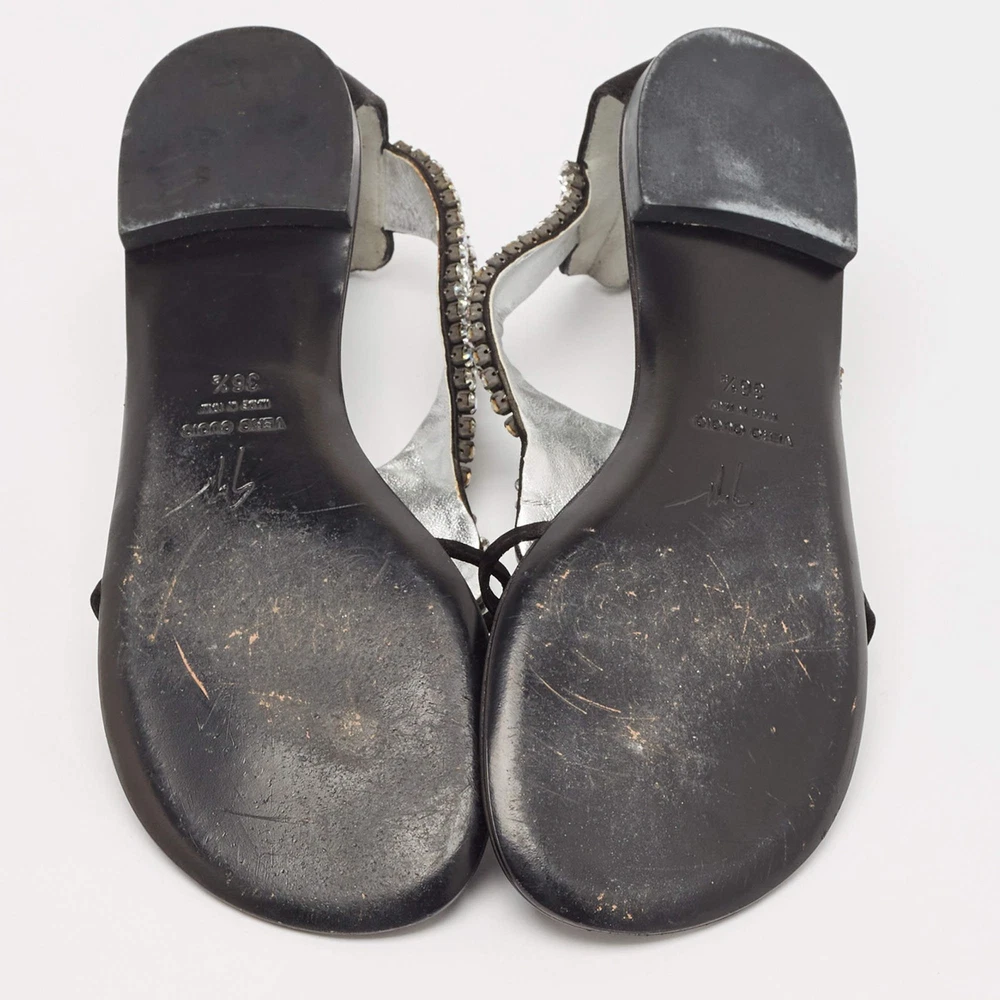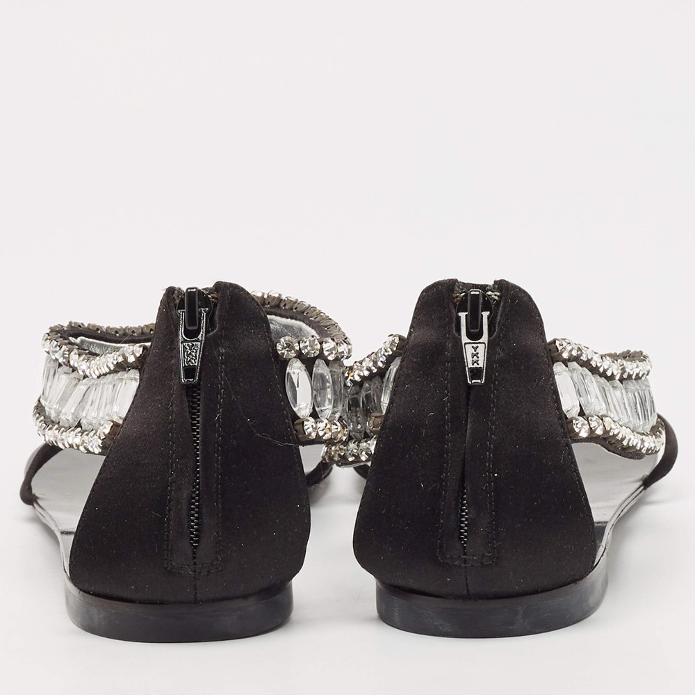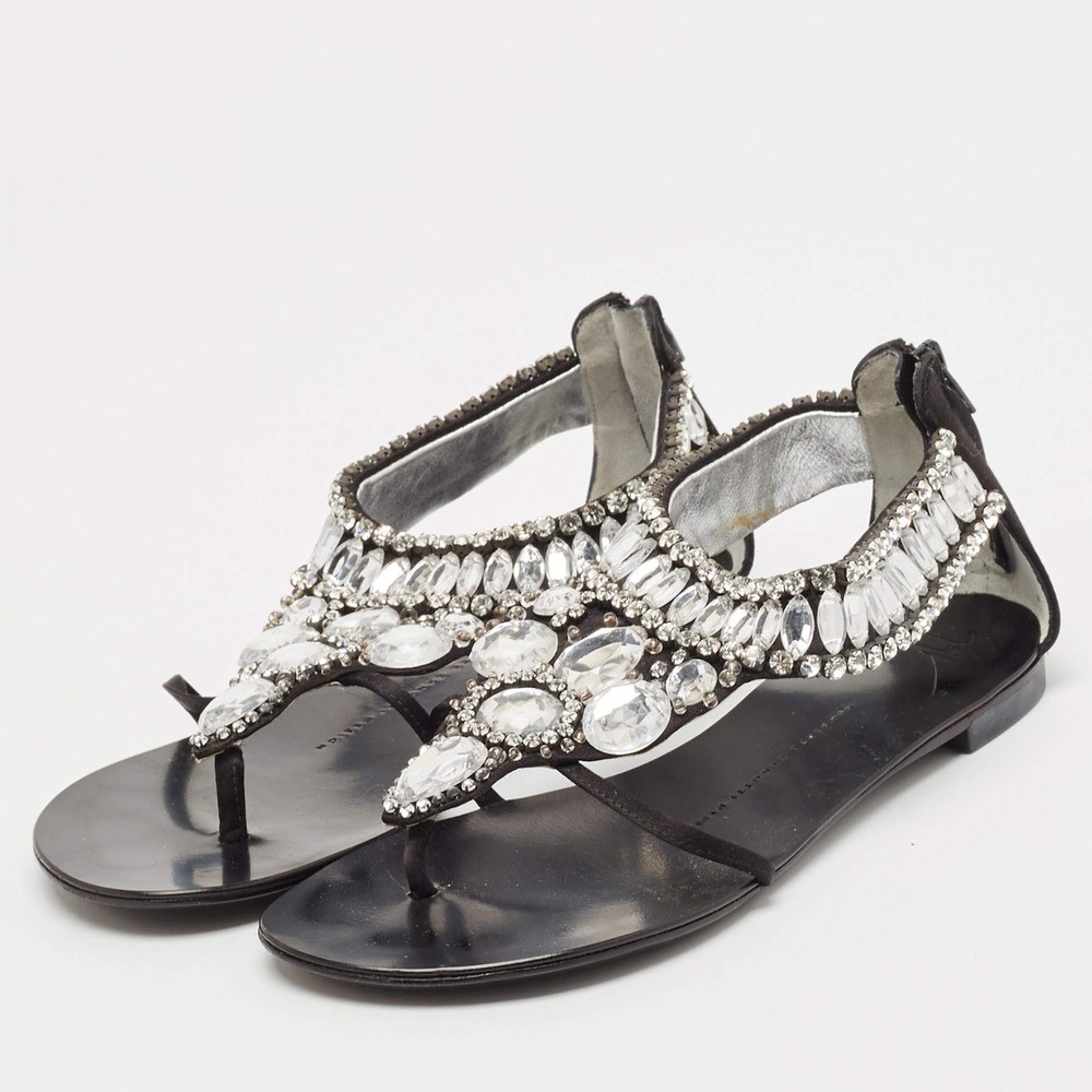 Our eBay Store About Us Contact Us Add to Favorite Sellers Giuseppe Zanotti Black Satin Crystal Embellished Ankle Strap Flat Sandals Size These fashionable sandals from Giuseppe Zanotti can give your entire ensemble a makeover. Crafted from quality satin, they come in a classic shade of black. They are styled with open toes, crystal embellished dragons, ankle straps and black-tone hardware. They are finished with leather soles. Product Details Brand Giuseppe Zanotti Color Black Includes Original Dustbag Size 36.5 Certified by The Luxury Closet This item has gone through a detailed authentication process overseen by our experts. We offer a lifetime guarantee of authenticity on all our items. How We Check The in-house team of experts at The Luxury Closet is highly trained to verify the authenticity and the condition of the luxury products. They ensure that only 100% authentic items are put on sale.The evaluation process is unique with its own mix of assessment criteria and differs according to the category. Each item is evaluated based on the following combination of hallmarks, hardware, stitching, symmetry, material, craftsmanship, stamping, codes, hologram stickers, and packaging. Our authenticators also check if the items have been modified or amended (e.g., aftermarket diamonds, replaced batteries, repaired bags, etc.) International Buyers Import duties, taxes and charges are not included in the item price. These charges are the buyers responsibility. Please check with your country’s customs office to determine what these additional cost will be prior to buying.