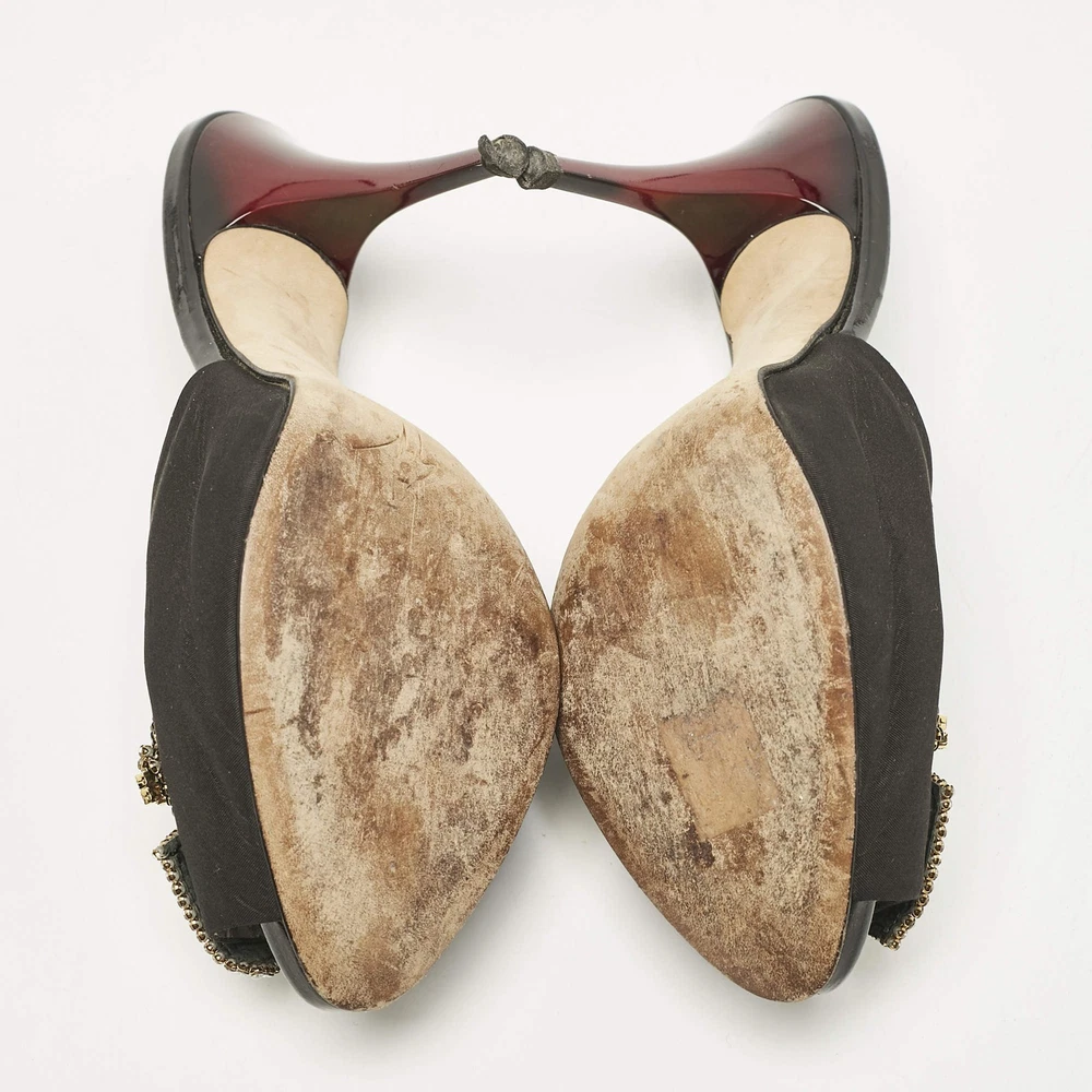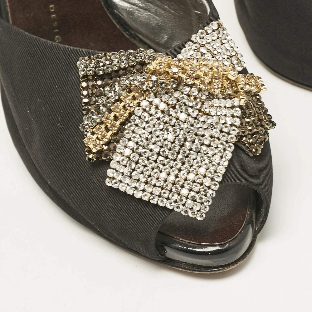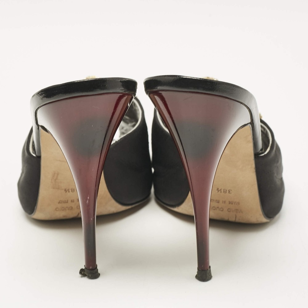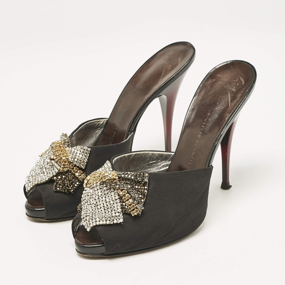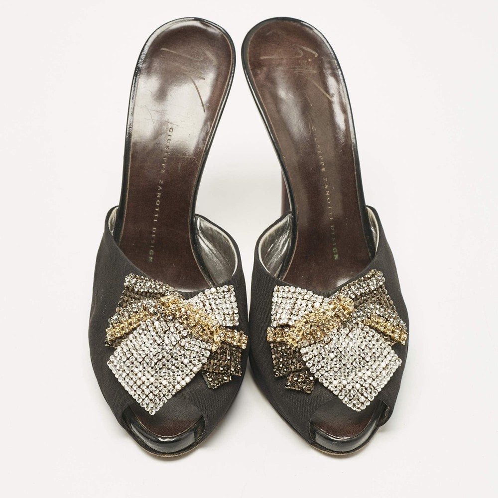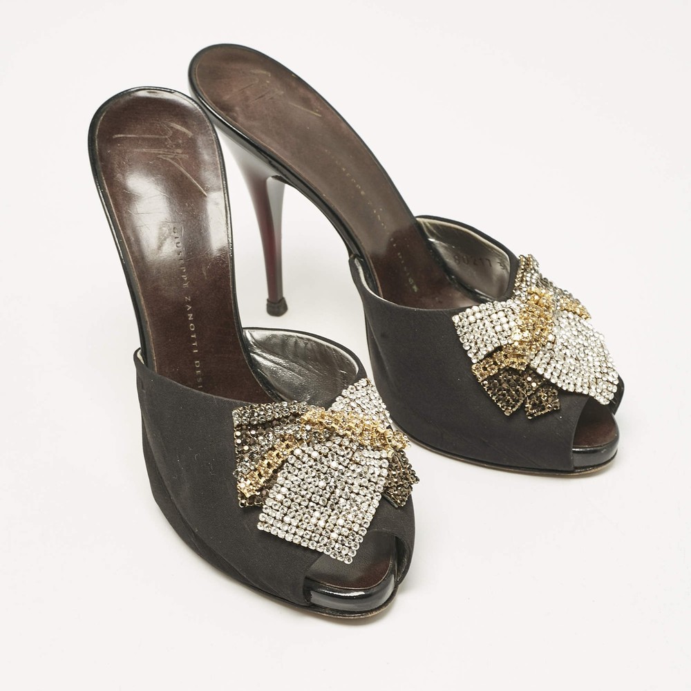 Giuseppe Zanotti Black Satin Crystal Embellished Mules Size 385