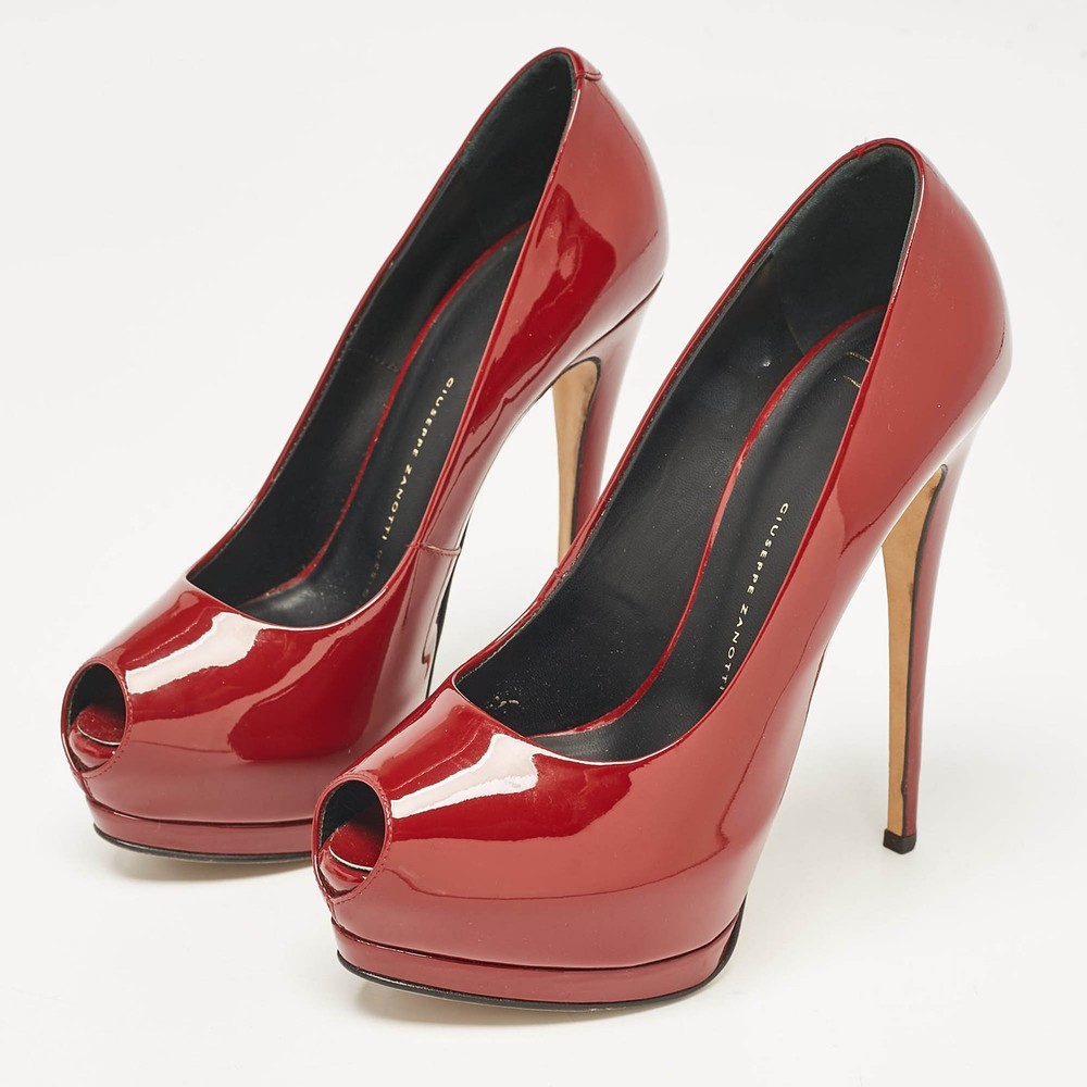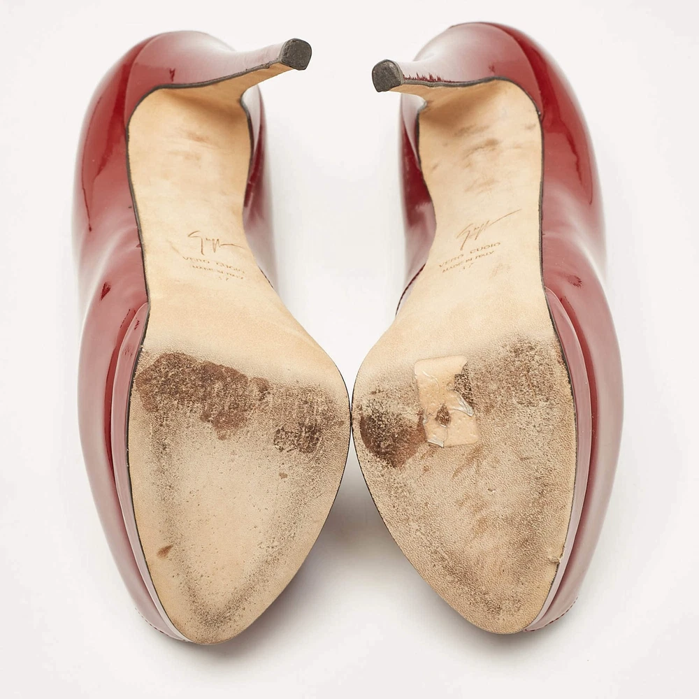 Giuseppe Zanotti Burgundy Patent Leather Sharon Peep Toe Pumps Size 37