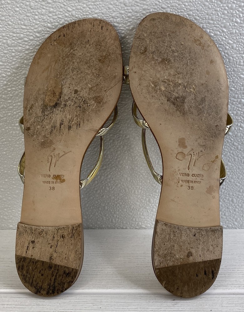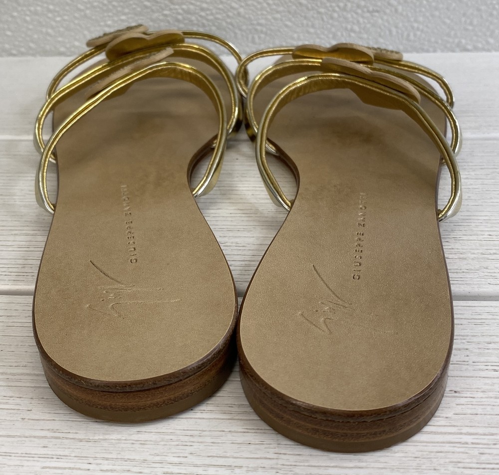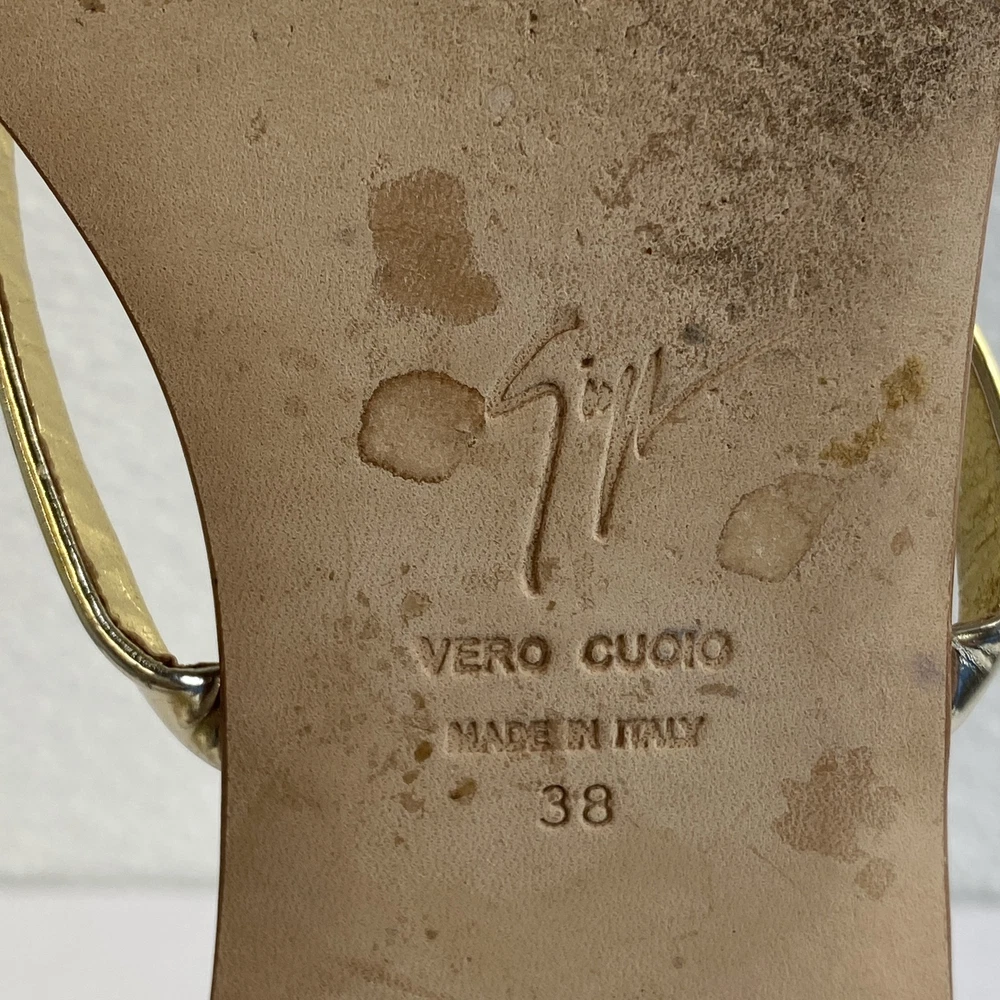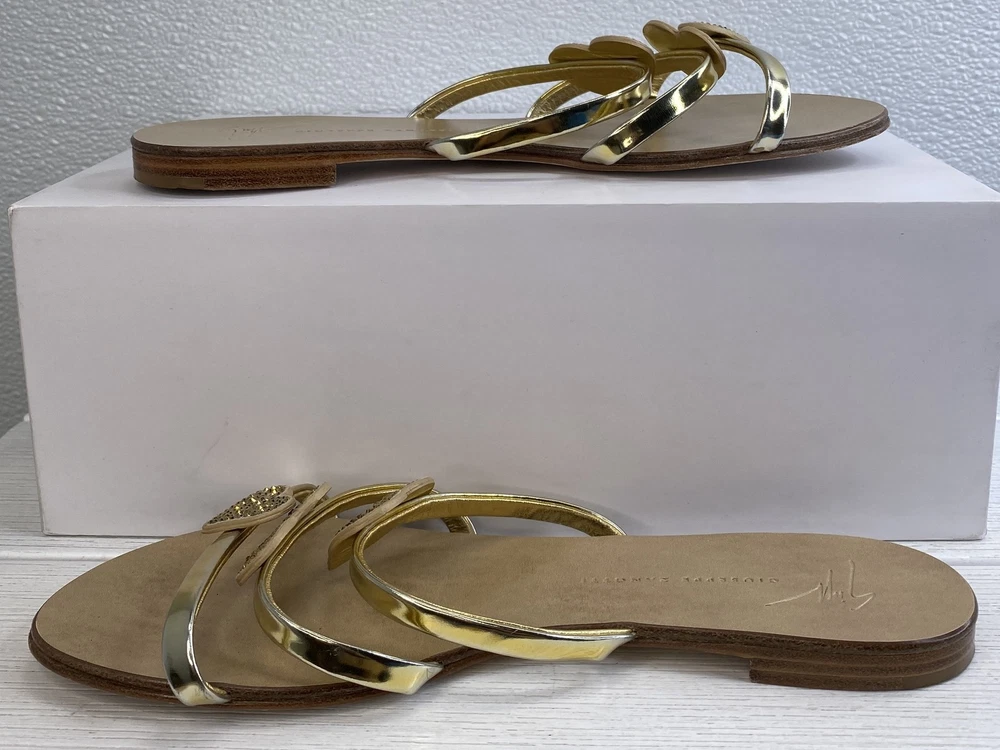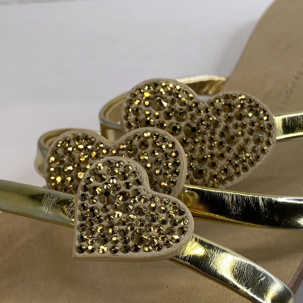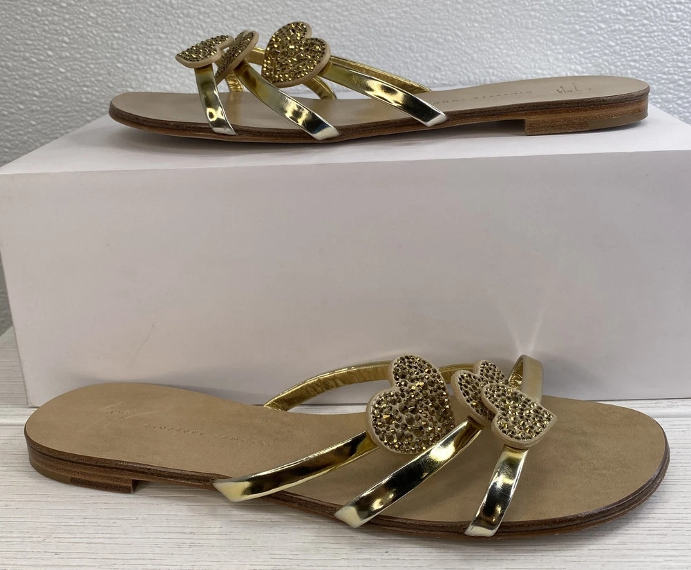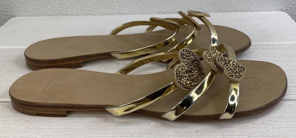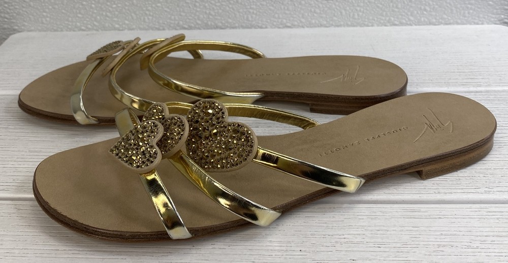 Giuseppe Zanotti Crystal Heart Sandals Women's US8 EU38 Gold Leather *PREOWNED*