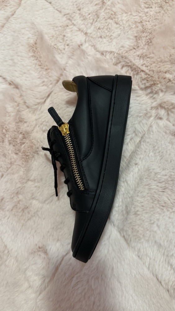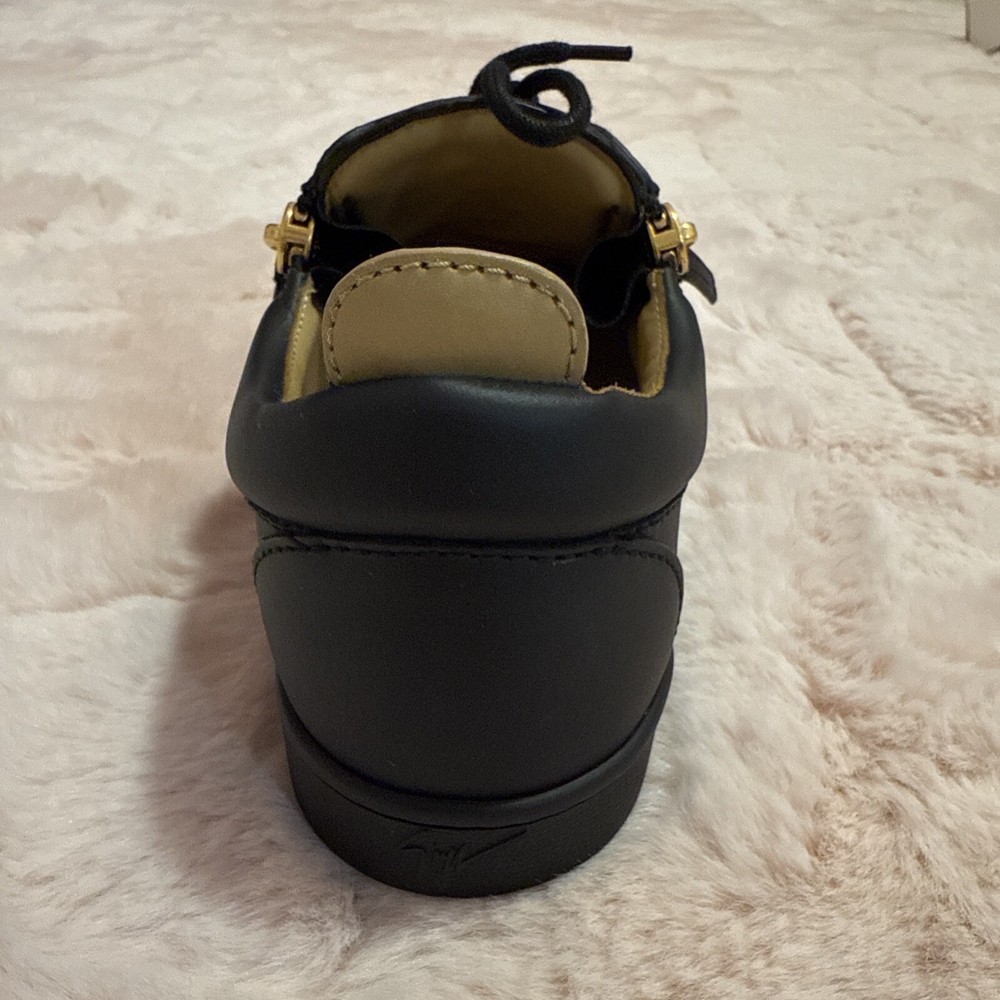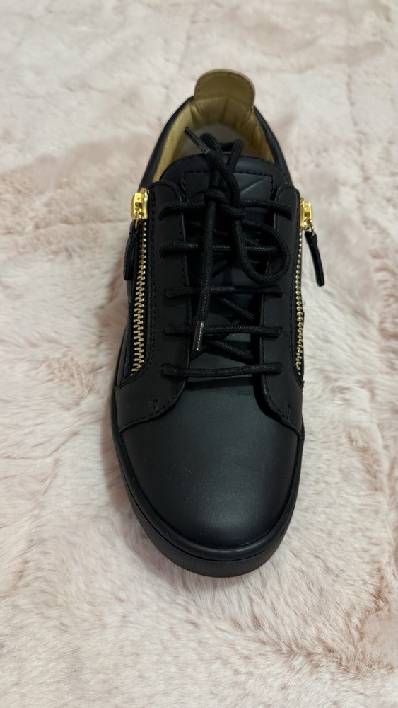 This listing is for a pair of Giuseppe Zanotti sneakers in size 39 for women. The sneakers come in a sleek black color with a stylish and modern design. They are made from leather, giving them a luxurious look and feel. The shoes are a trendy and fashionable choice for those looking for a high-end athletic shoe option.