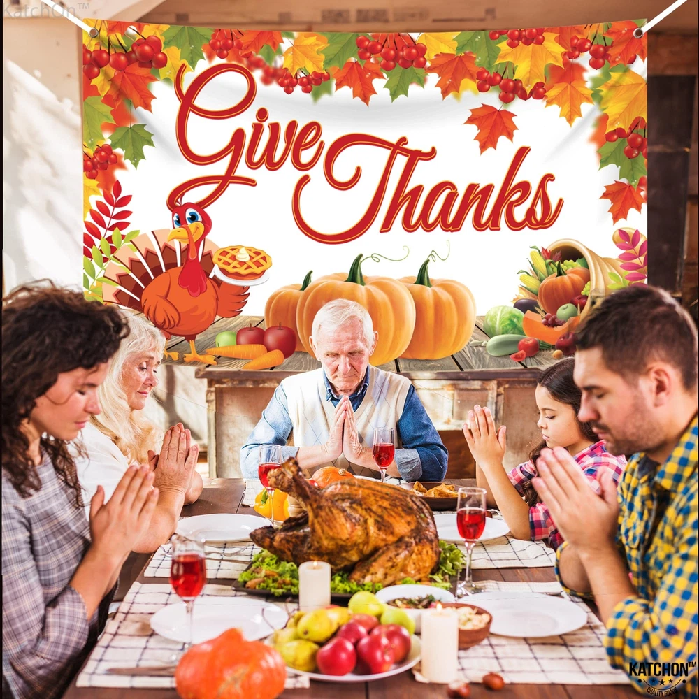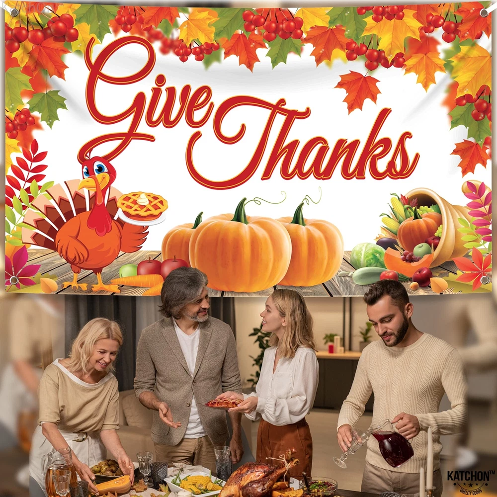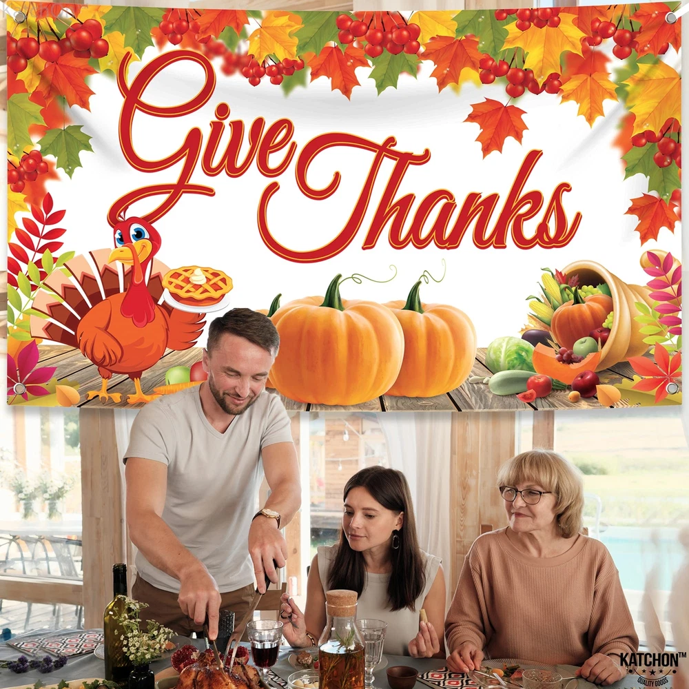 XTRALARGE | 72x44 INCH : Transform your Thanksgiving decorations into a festive feast with our xtralarge 72x44 Inch give thanks banner which consists with 20 feet white ribbon roll. and 4 holes in the corner. Elevate thanksgiving decorations for home, creating the adorable Thanksgiving party decorations. It's time to celebrate in style! Enhance your outdoor or indoor space with a festive thanksgiving backdrop, The Thanksgiving banners are large enough to cover a significant area of your space. REUSABLE | STURDY | EASY TO INSTALL : Elevate your Friendsgiving or Thanksgiving decorations with our reusable, sturdy and easy to install give thanks backdrop for Thanksgiving decorations. Create memorable moments with thanksgiving decorations indoor or outdoor and stunning Thanksgiving backdrops for photography. These thanksgiving wall banner effortlessly transform any space! Decorate your home, or any other place with a happy Friendsgiving banner and enjoy fall decorations. PRINTED ADORABLE DESIGNS : Uplift your Friendsgiving party with our printed adorable designs! From a charming Thanksgiving backdrop to Friendsgiving photo backdrop, our collection brings warmth and style to your festivities. Explore Friendsgiving decor that's as delightful as your gathering! Set the scene for an unforgettable Friendsgiving gathering with our thanksgiving wall banner and a custom thanksgiving party decorations that adds a personal touch to your celebration. FINE FINISH | TIMELESS MESSAGE: Elevate your Thanksgiving party decorations with our beautifully crafted Give Thanks Banner. Designed with a fine finish, this banner adds a touch of elegance and warmth to any setting. Whether you're creating a welcoming atmosphere with a Friendsgiving banner or adding charm with a Friendsgiving sign, this banner helps set the perfect tone. Use it as a Happy Thanksgiving backdrop to express gratitude and make lasting memories. Enhance your celebration. HARVEST THEME THANKSGIVING DECORATIONS : Celebrate the season in style with Thanksgiving Decorations! Create a festive atmosphere with happy Friendsgiving decorations ideal as Friendsgiving photo backdrop. happy Thanksgiving banner to cherish the memories. Elevate your space with thanksgiving poster & decoration, making your gathering truly special. Embrace the warmth of autumn and gratitude with these delightful accents. Elevate your Friendsgiving party decorations with our Give Thanks Banner. Powered by BRND.ME
