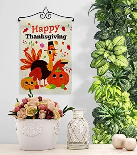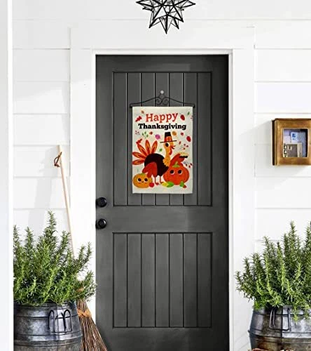 Give Thanks Turkey Garden Flag Set Wall Hanger Falltime Thanksgiving Gobble P...