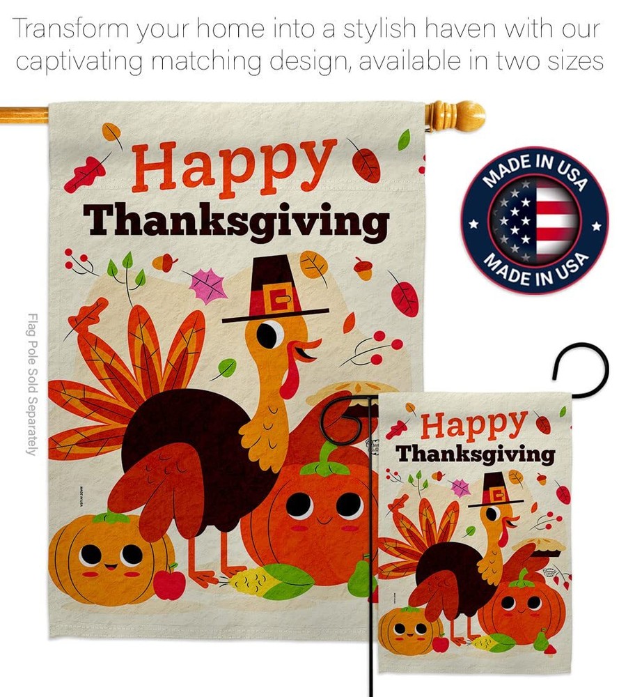 Give Thanks Turkey Garden Flag Set with Stand for Fall and Thanksgiving Decor