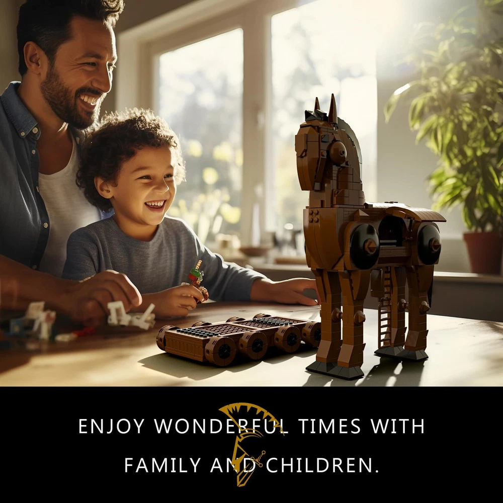The Trojan Horse building ses consists of 1120 pieces easy-installation parts. We provide a detailed instructions that the children or adult can follow step by step to assemble it. This The Trojan Horse building kit provides an immersive and rewarding building experience. With realistic features, help adults and kids to develop their creativity, bravery and resilience through hours of immersive building and play. These Trojan Horse toys great for kids birthday party favors, carnival prizes, Boyfriend gift, Christmas giveaways, goodie bag fillers, miniature novelty toys, Halloween party giveaway . This Trojan Horse toys set is the perfect gift for boys, girls 8+ years age. A new adventure awaits, this famous landmark can be put on display in the home or office for lovers of ancient architecture and history to enjoy.